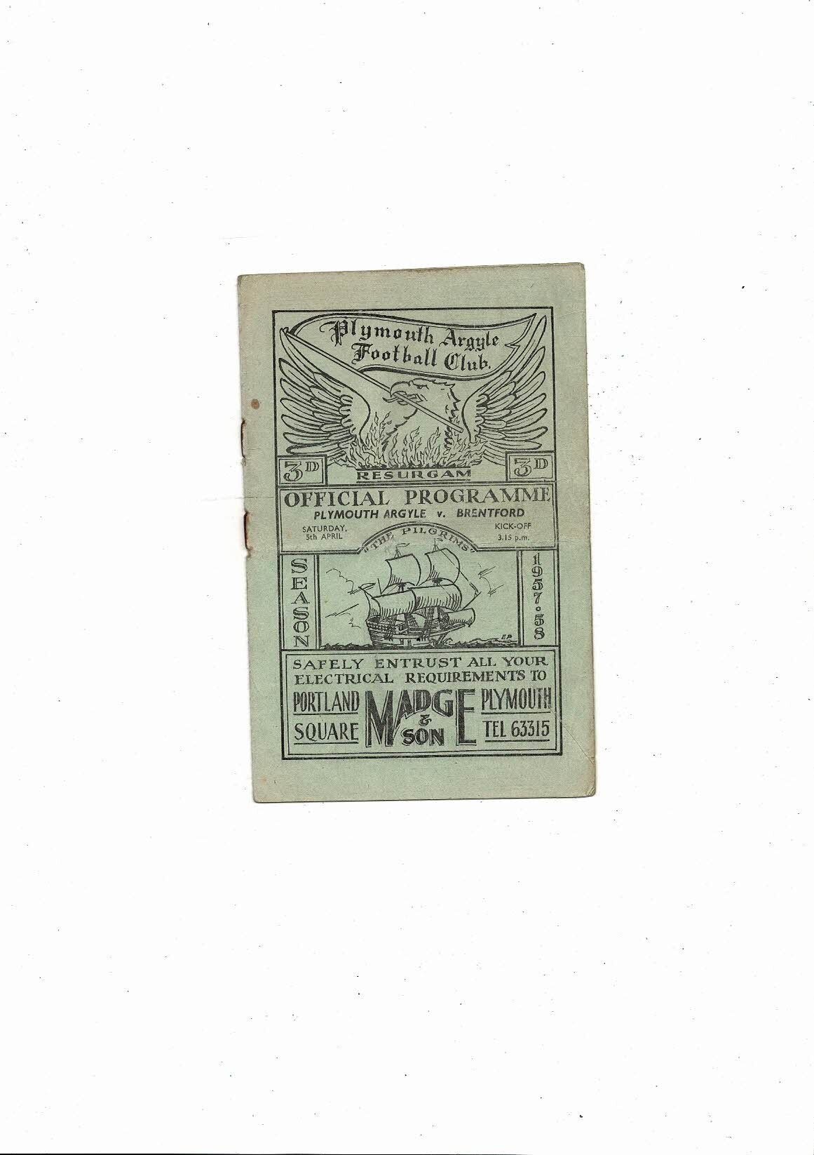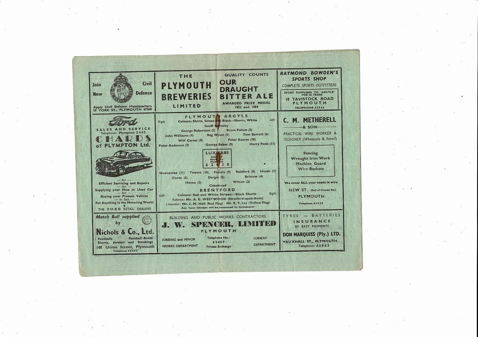 1957/58 Plymouth Argyle v Brentford Football Programme
