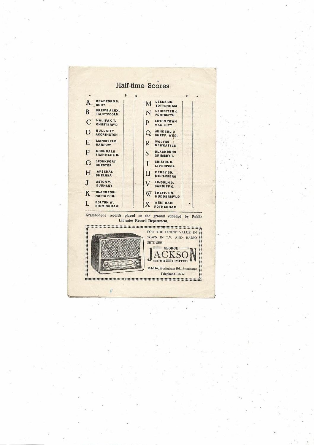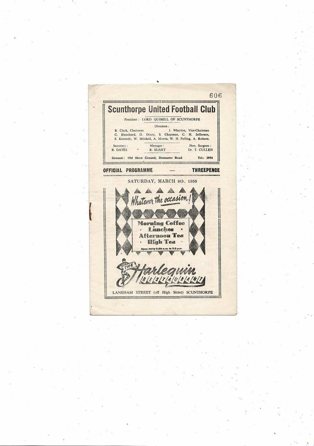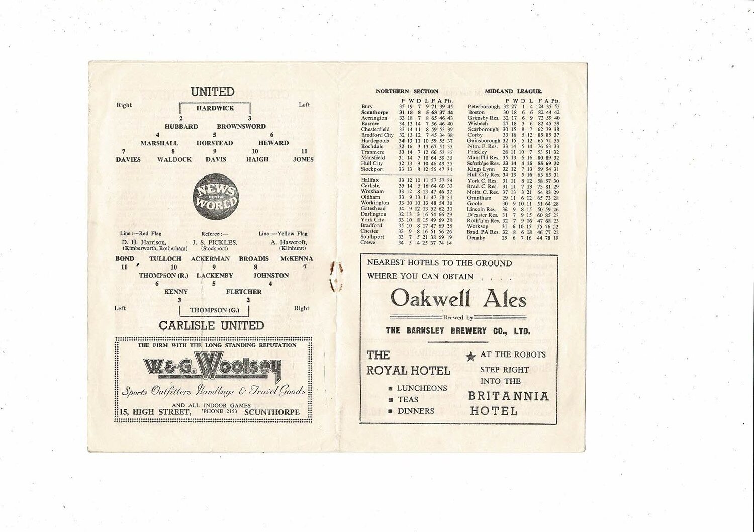 1957/58 Scunthorpe United v Carlisle United Football Programme postponed.