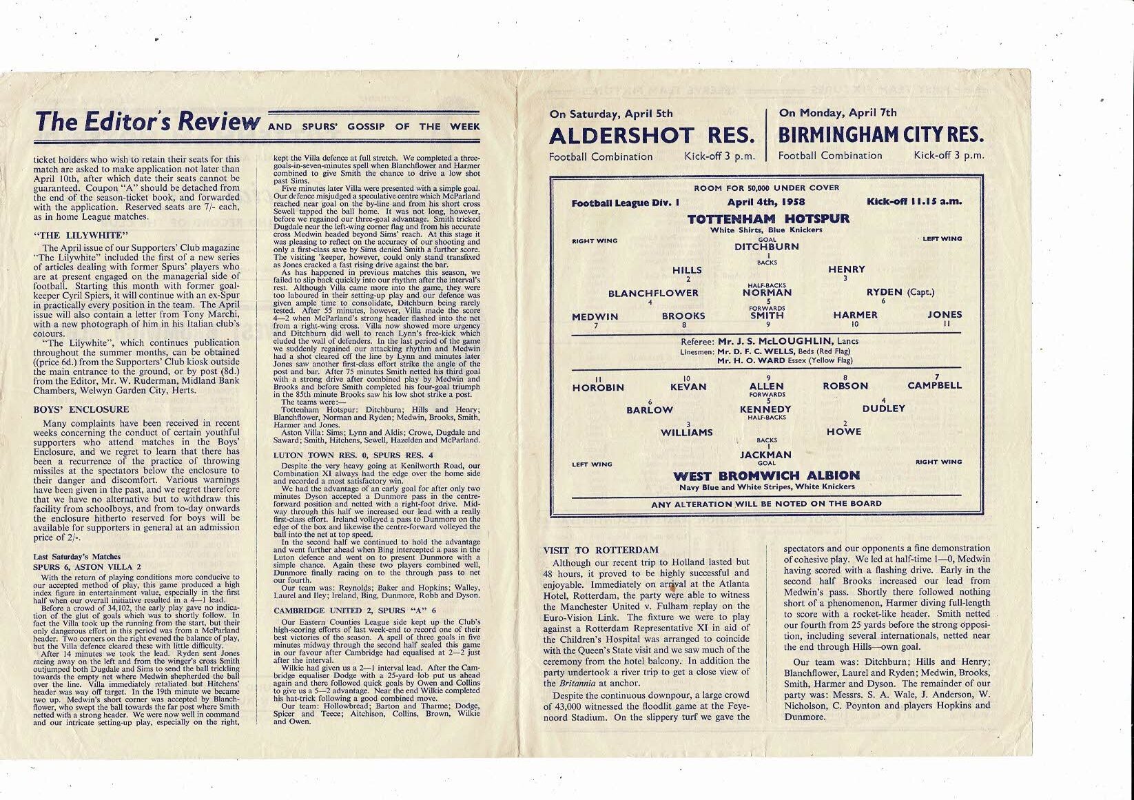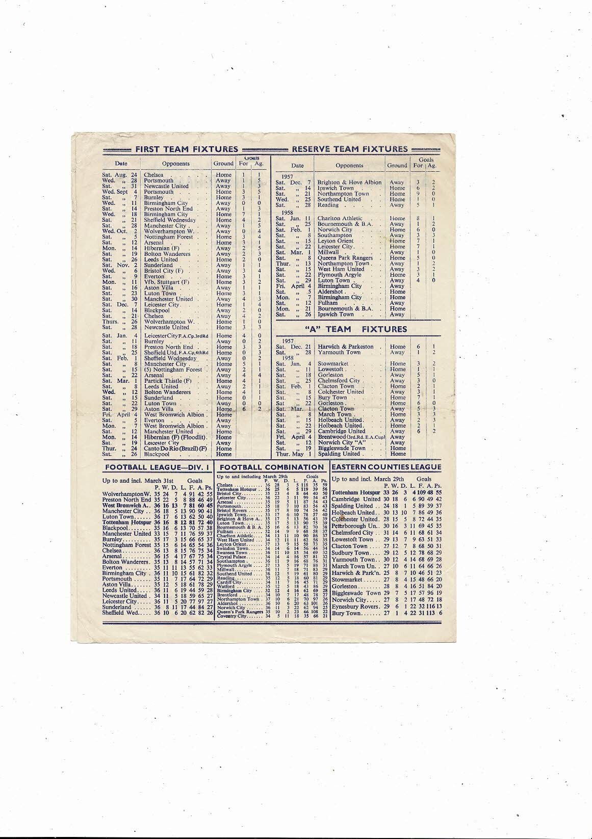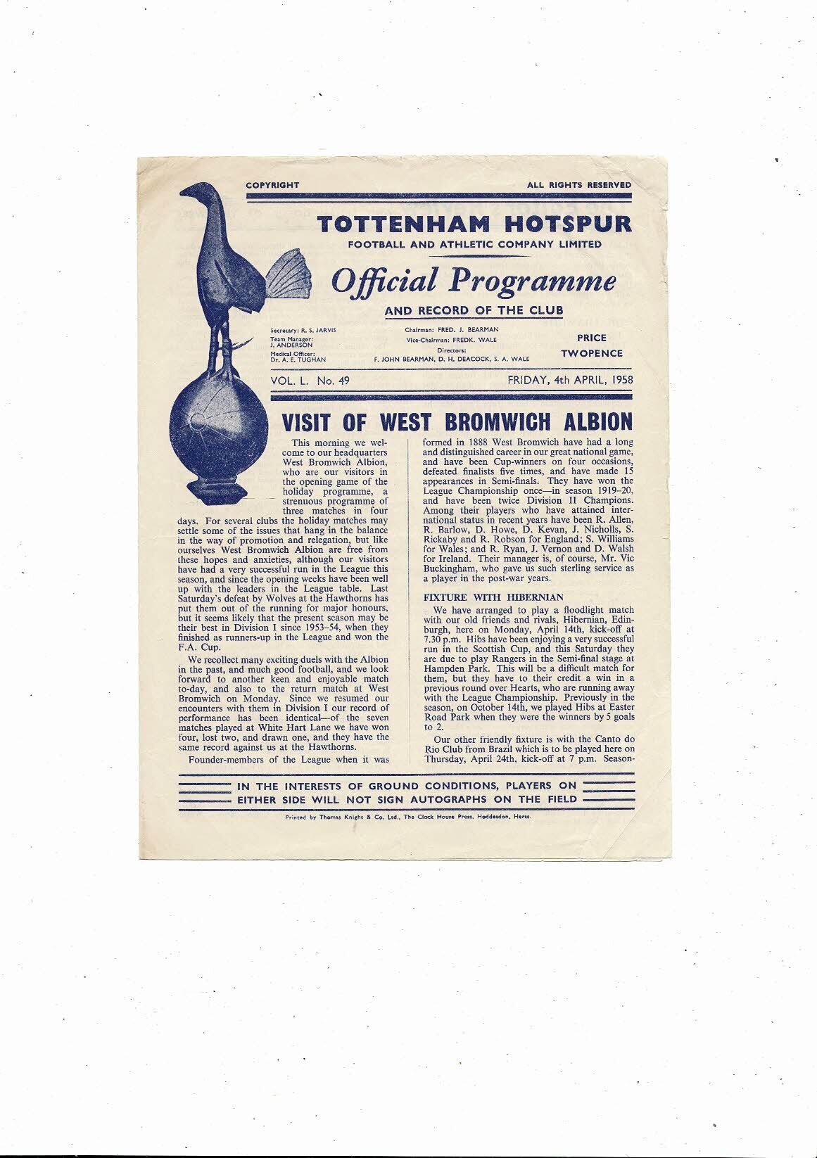 1957/58 Tottenham Hotspur v West Bromwich Albion Football Programme