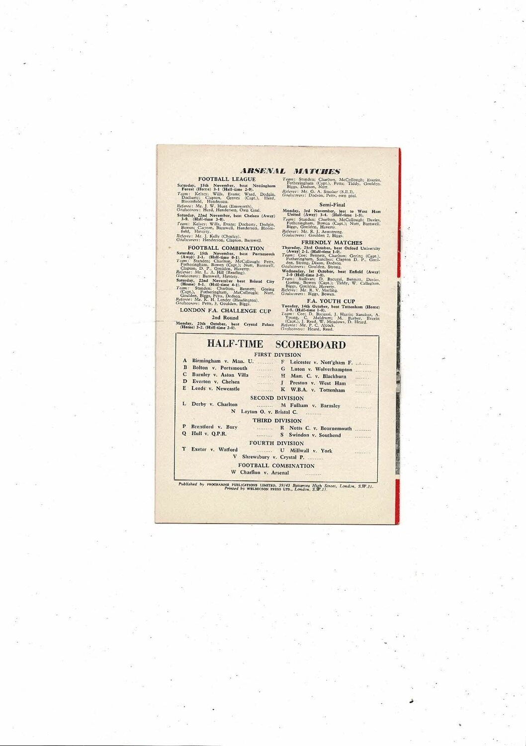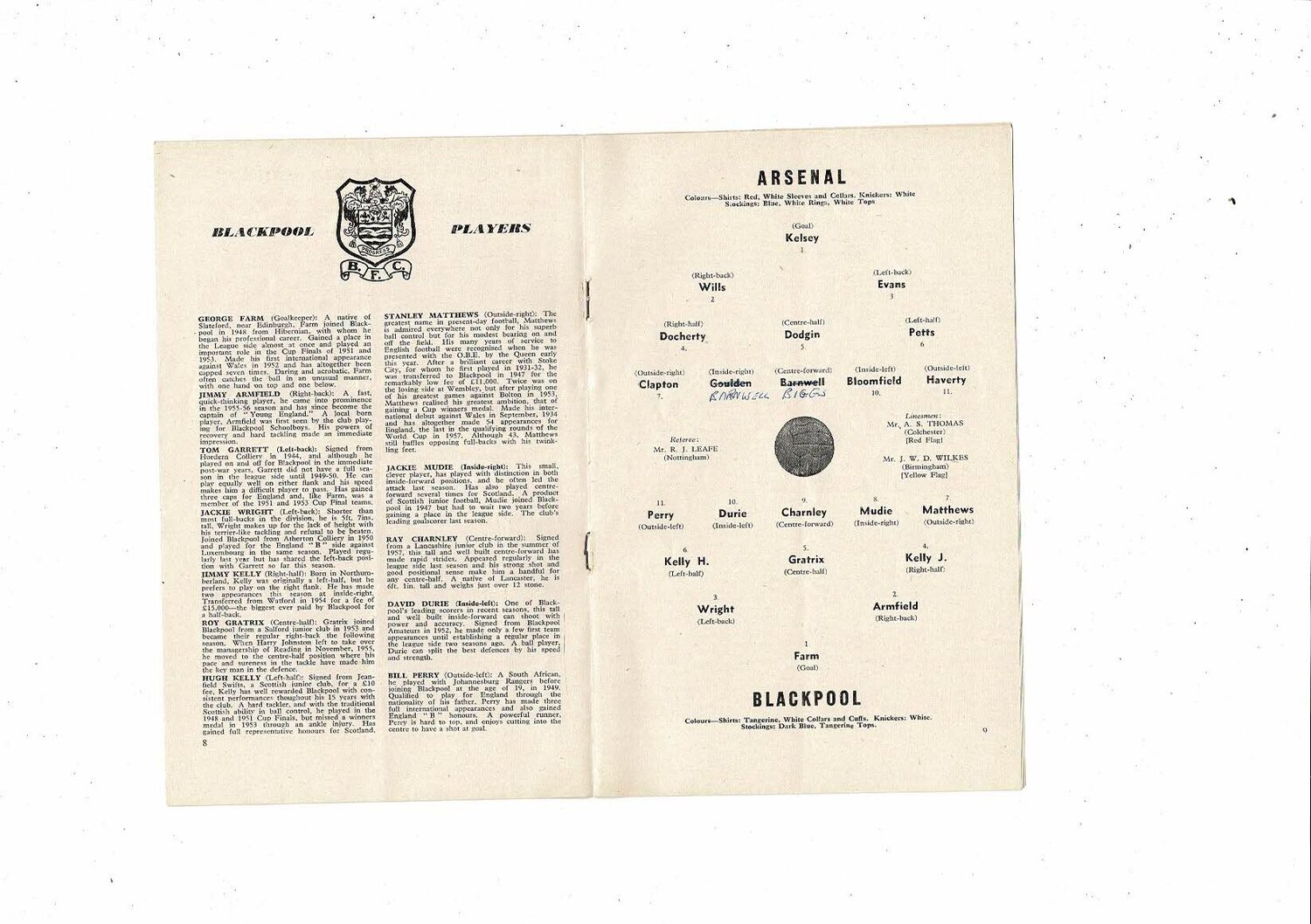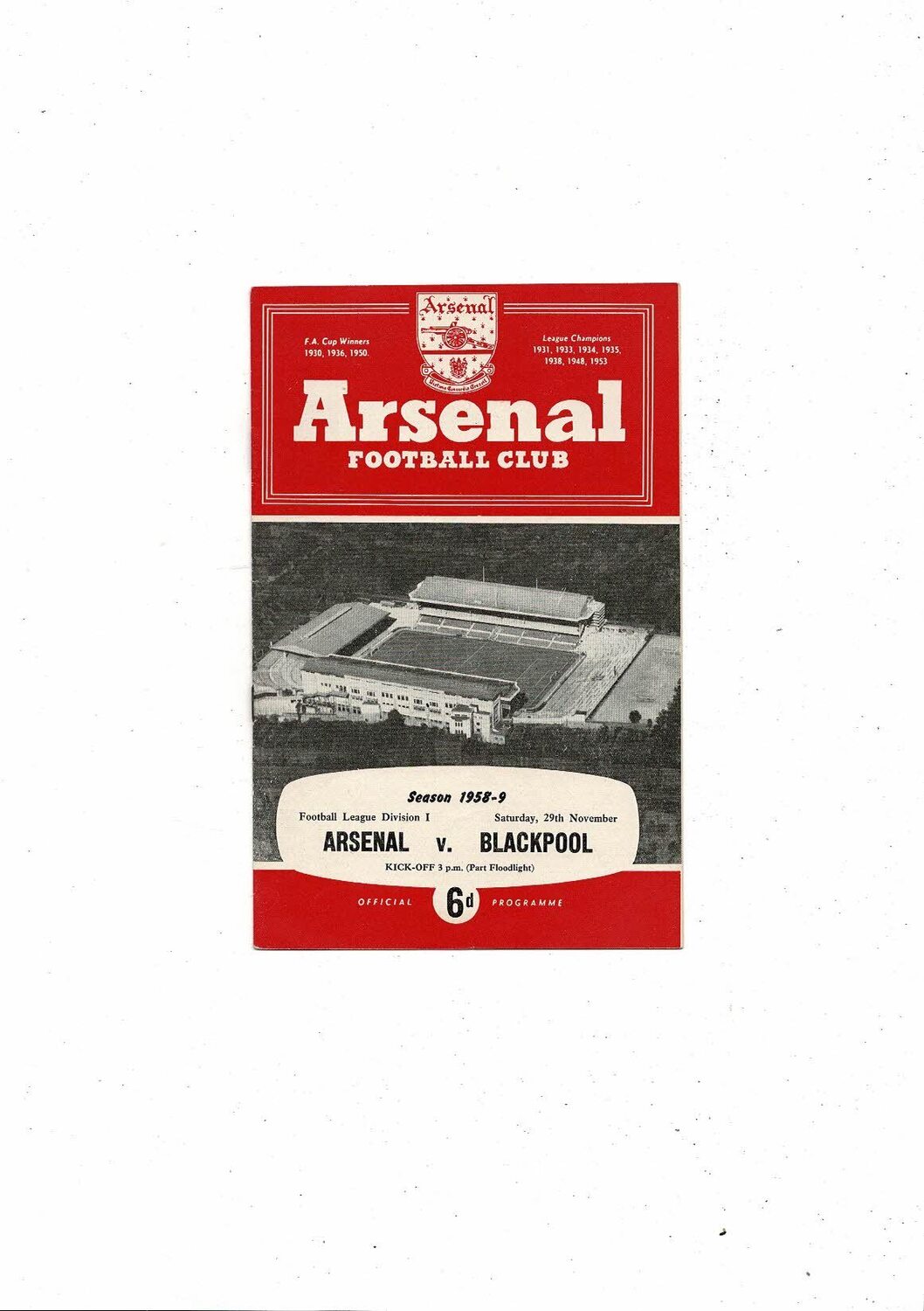1958/59 Arsenal v Blackpool Football Programme