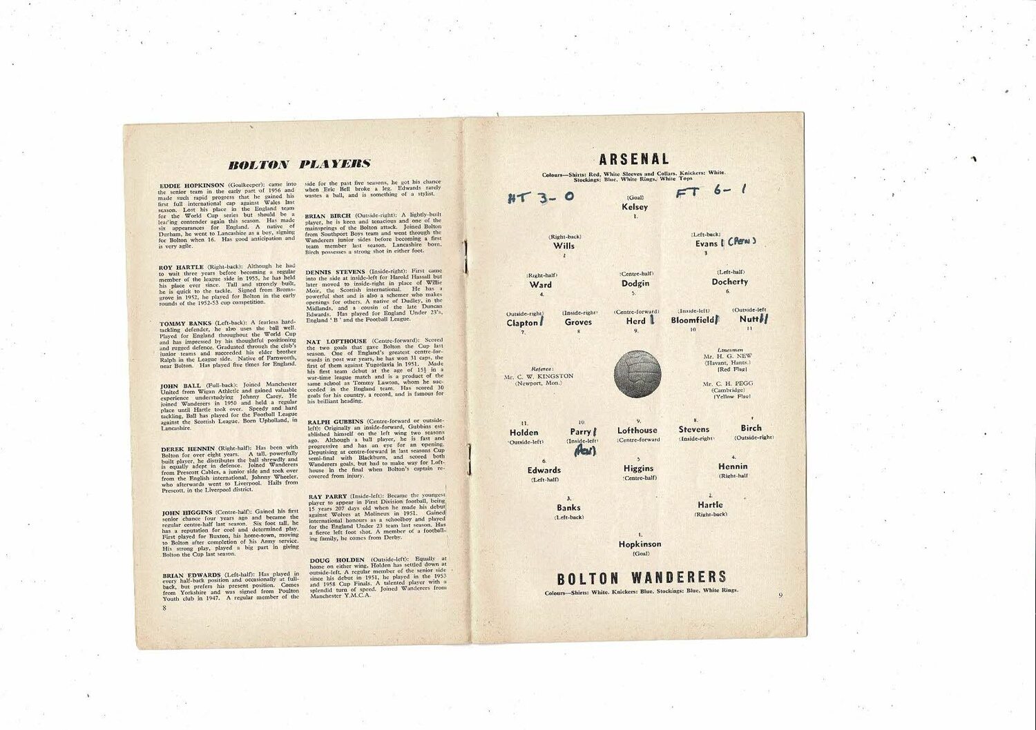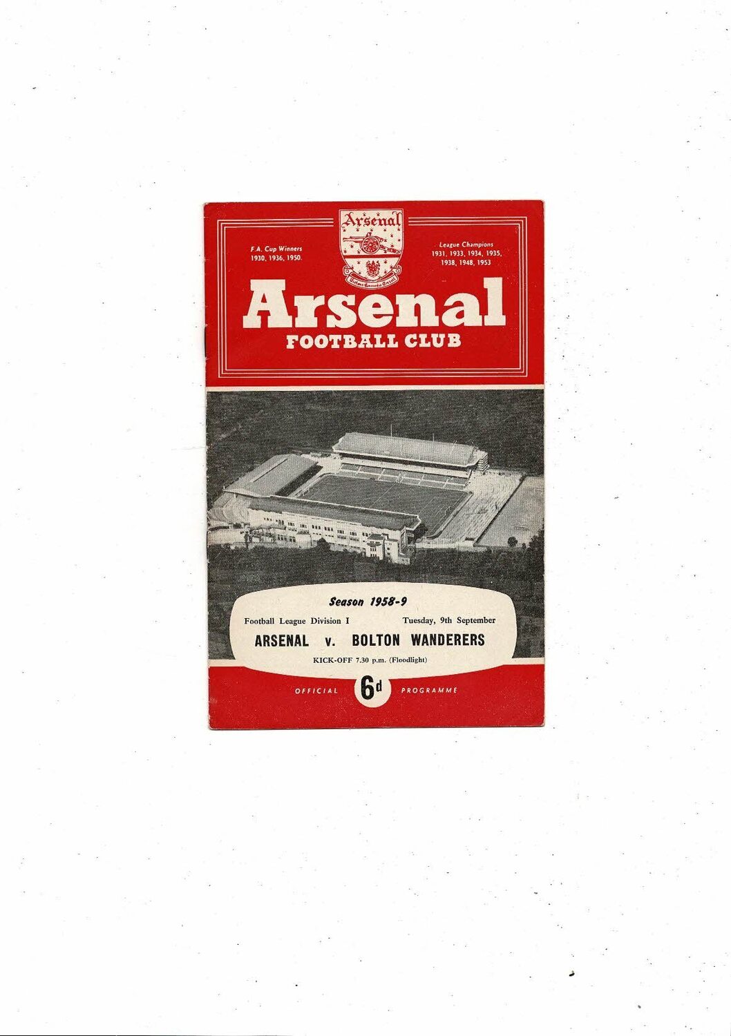 1958/59 Arsenal v Bolton Wanderers Football Programme