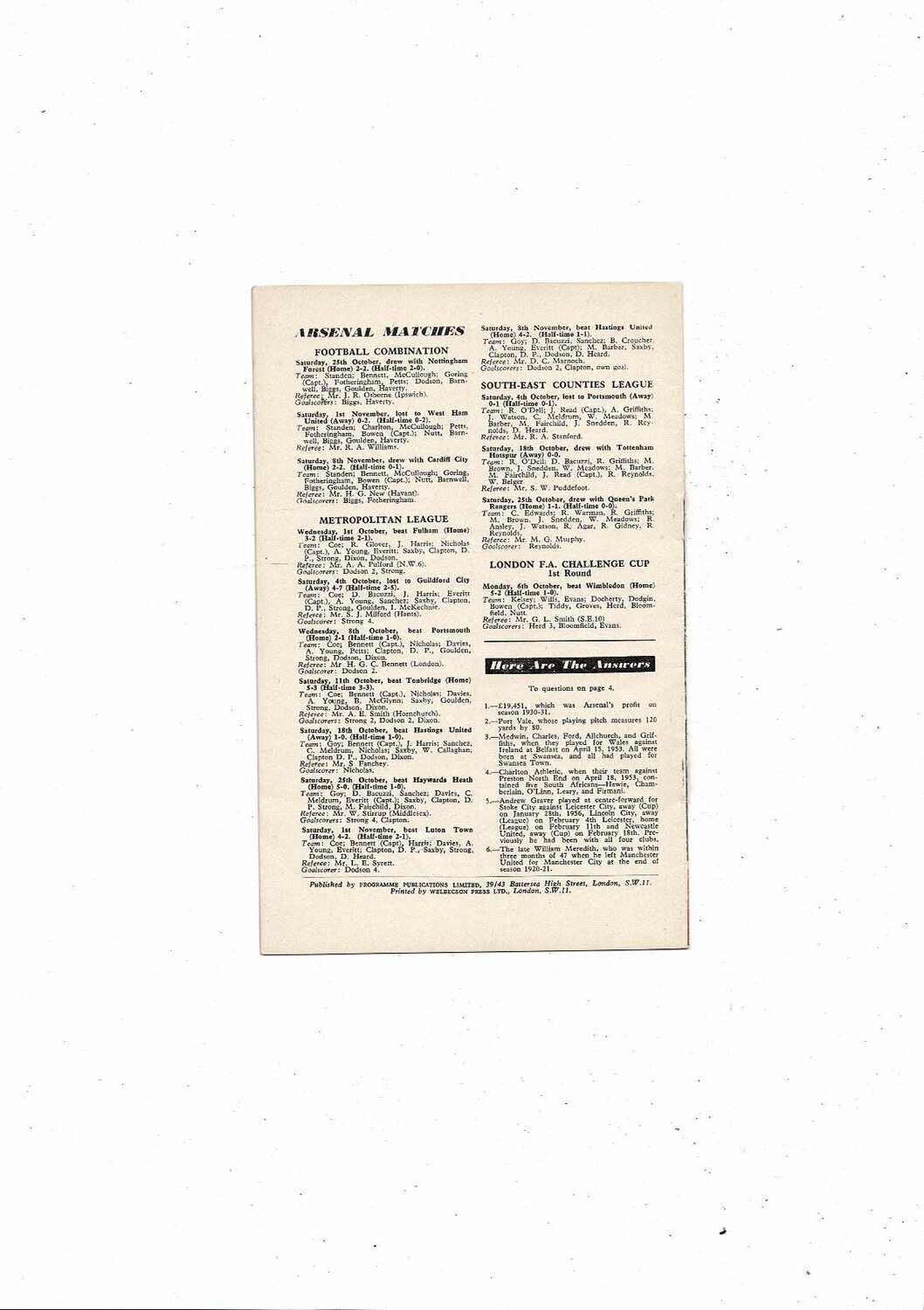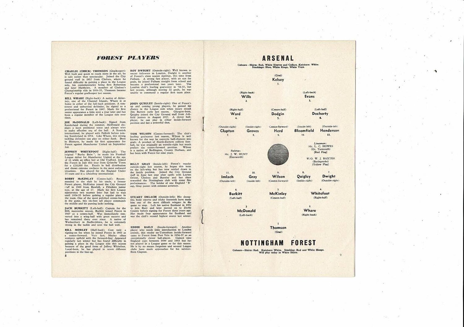 1958/59 Arsenal v Nottingham Forest Football Programme