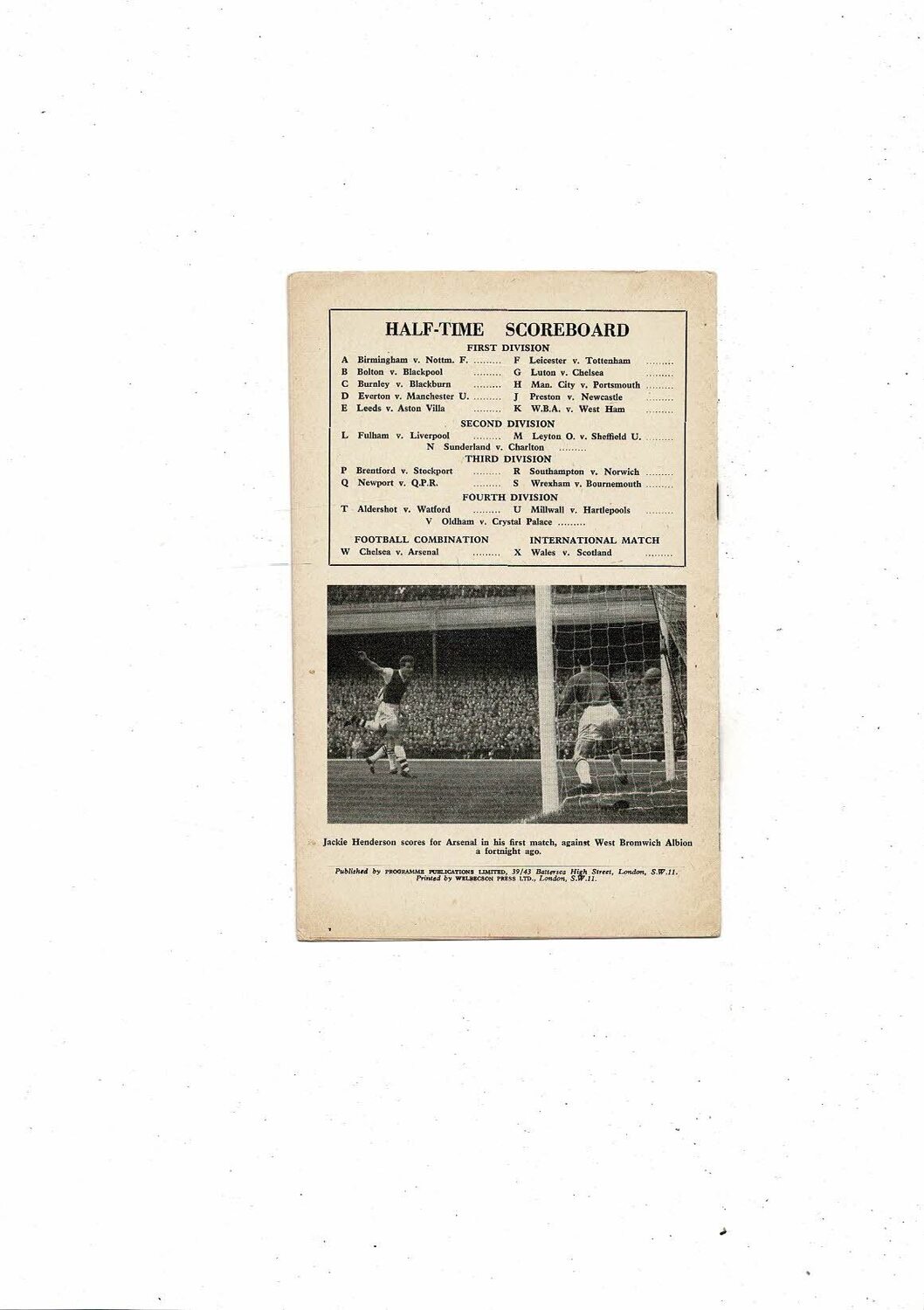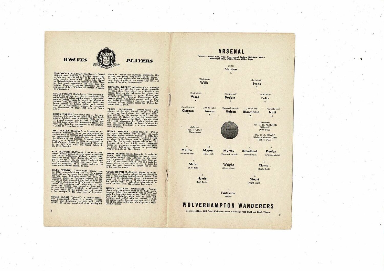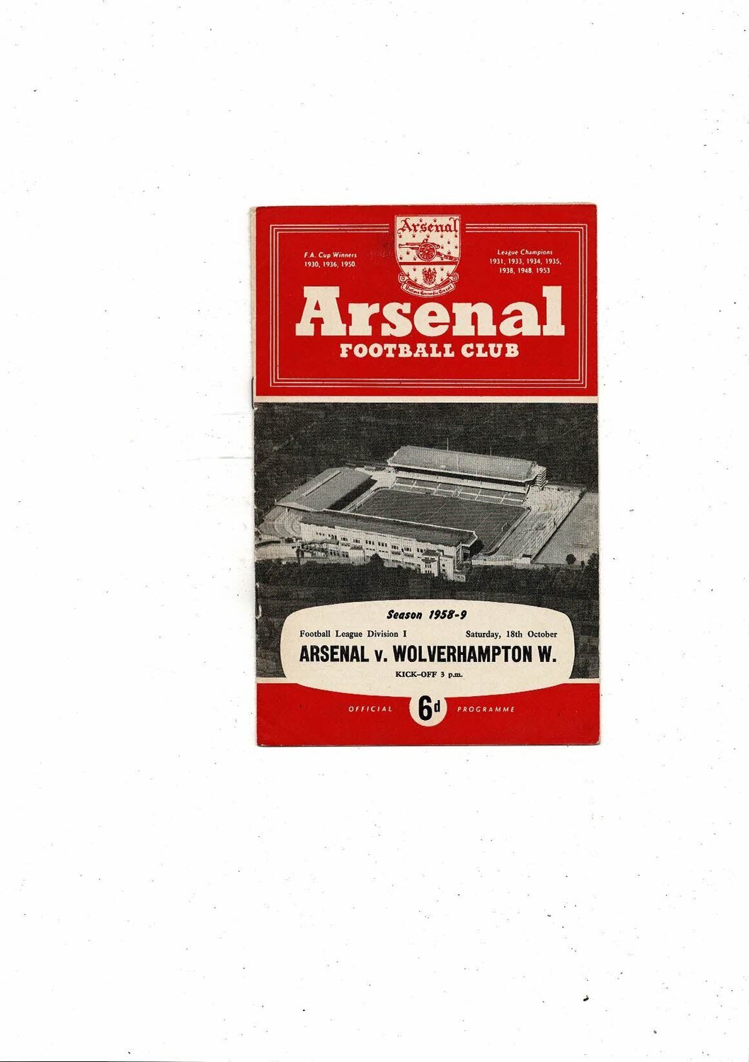 1958/59 Arsenal v Wolves Football Programme