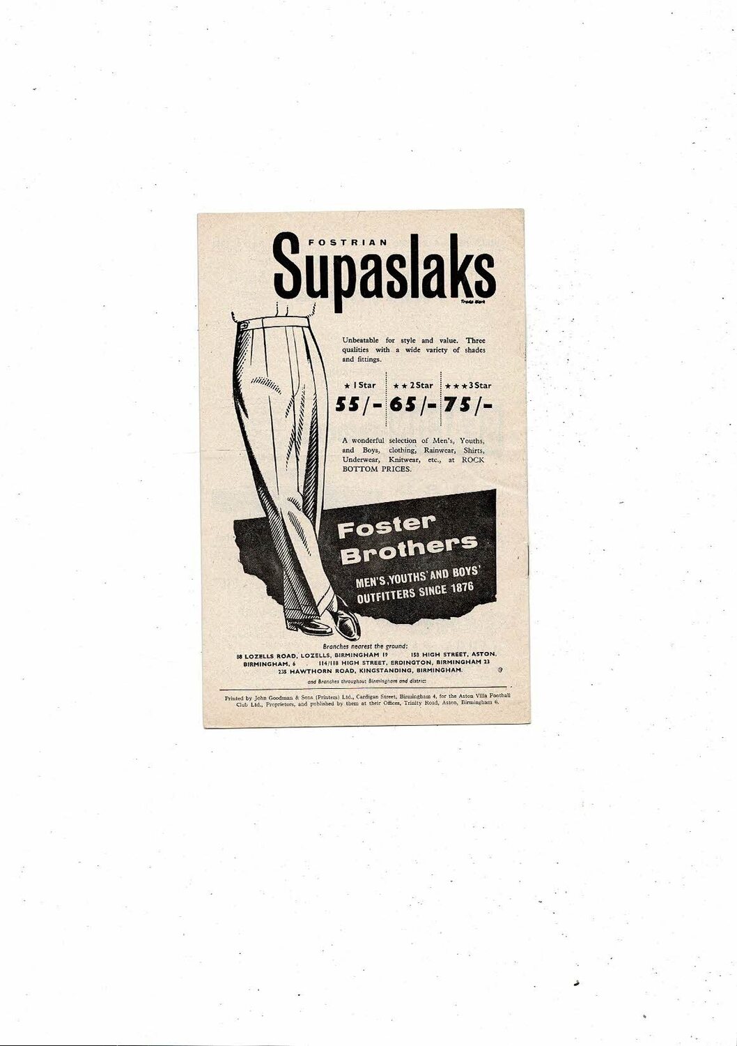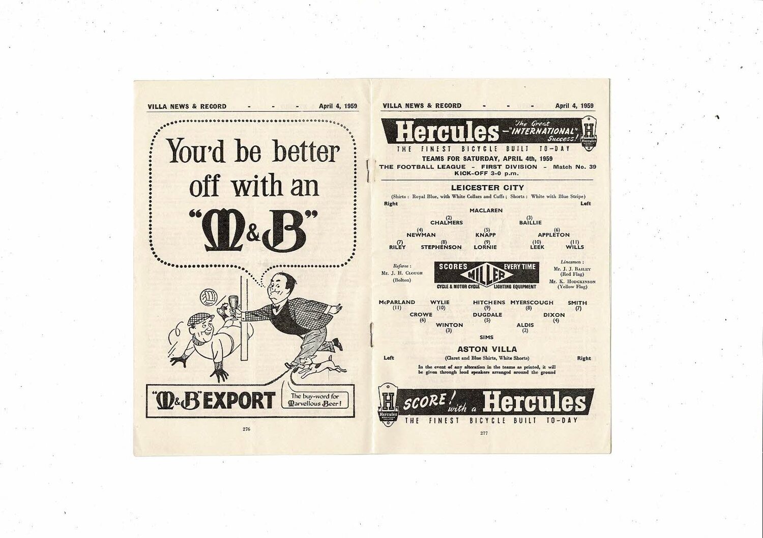 1958/59 Aston Villa v Leicester City Football Programme