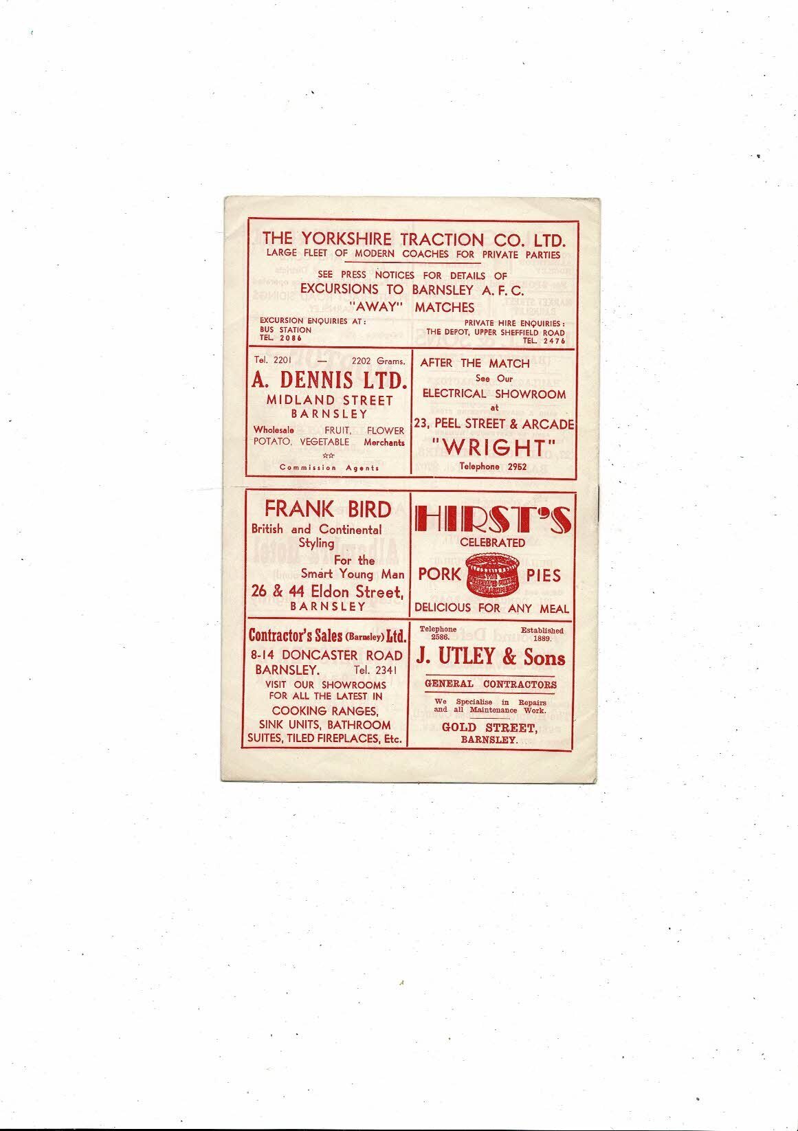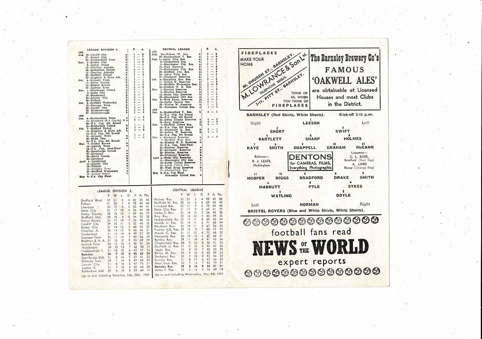 1958/59 Barnsley v Bristol Rovers Football Programme