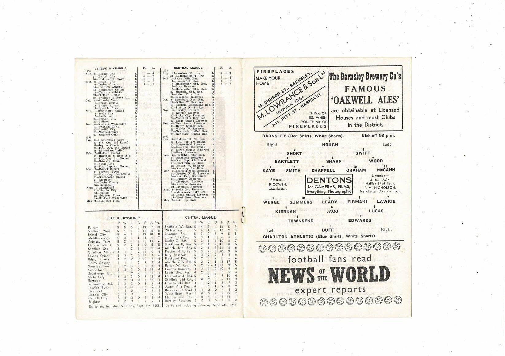 1958/59 Barnsley v Charlton Athletic Football Programme