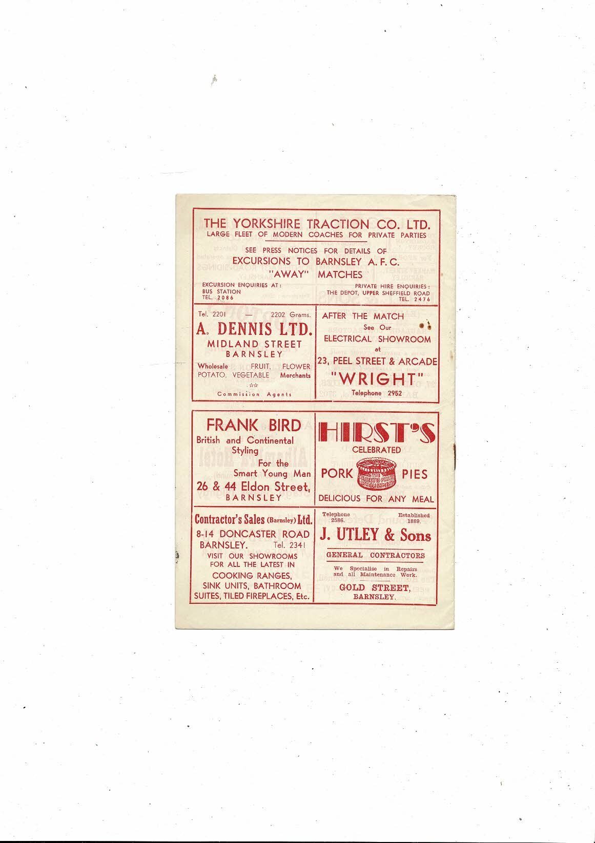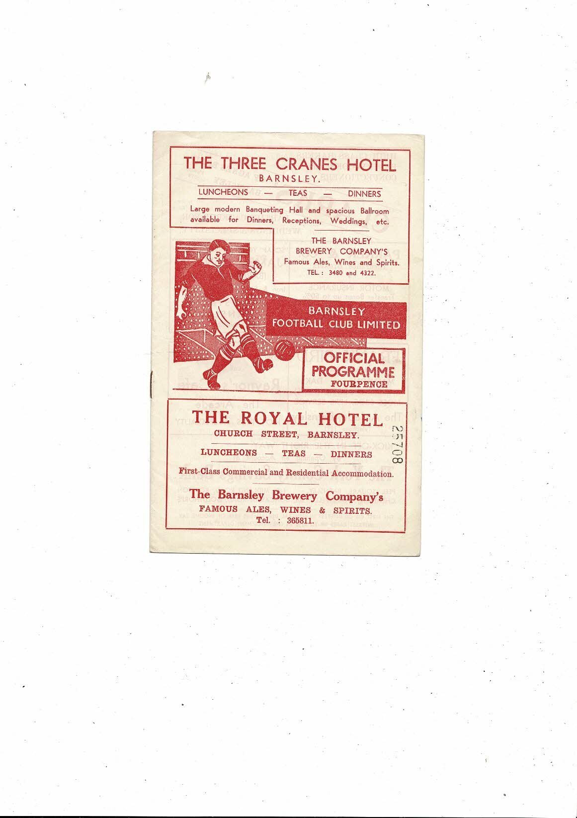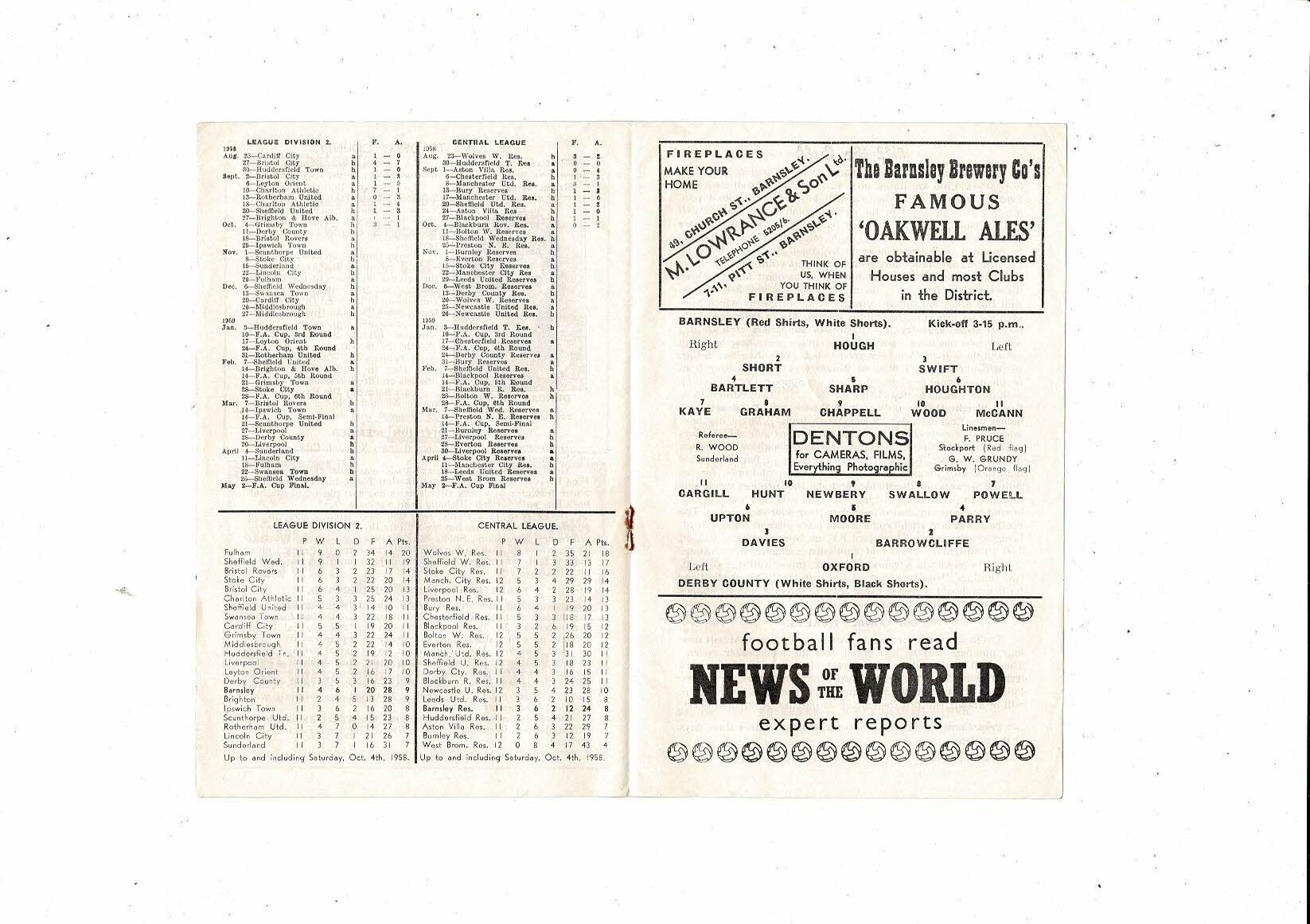 1958/59 Barnsley v Derby County Football Programme