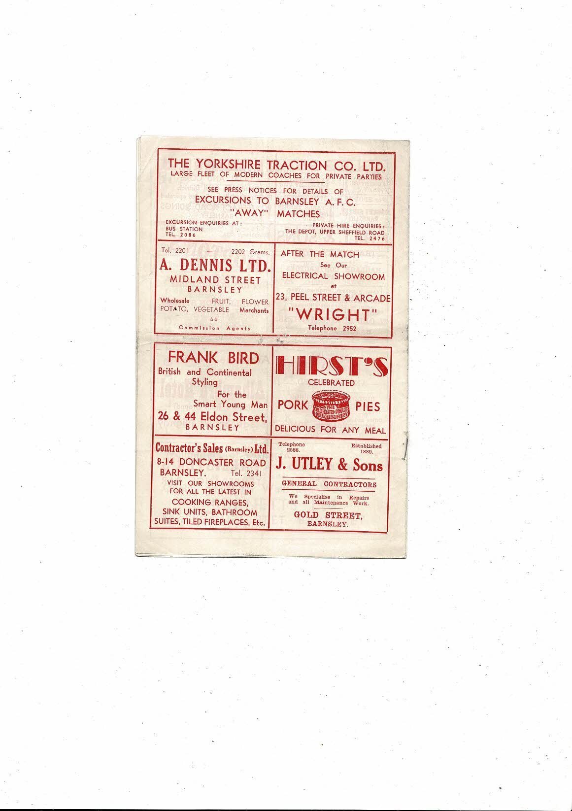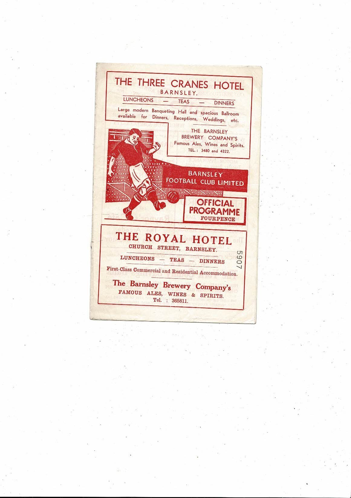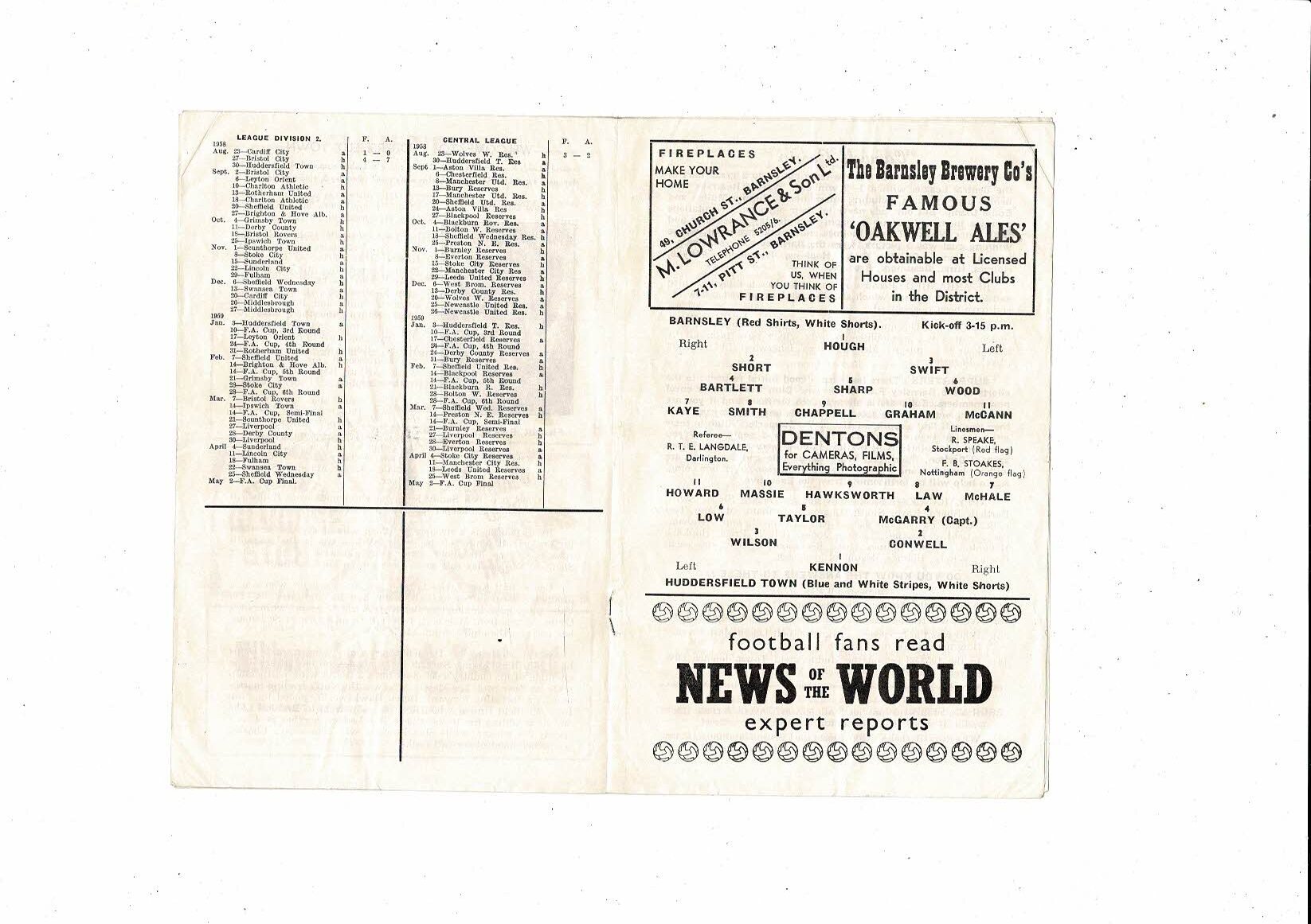 1958/59 Barnsley v Huddersfield Town Football Programme