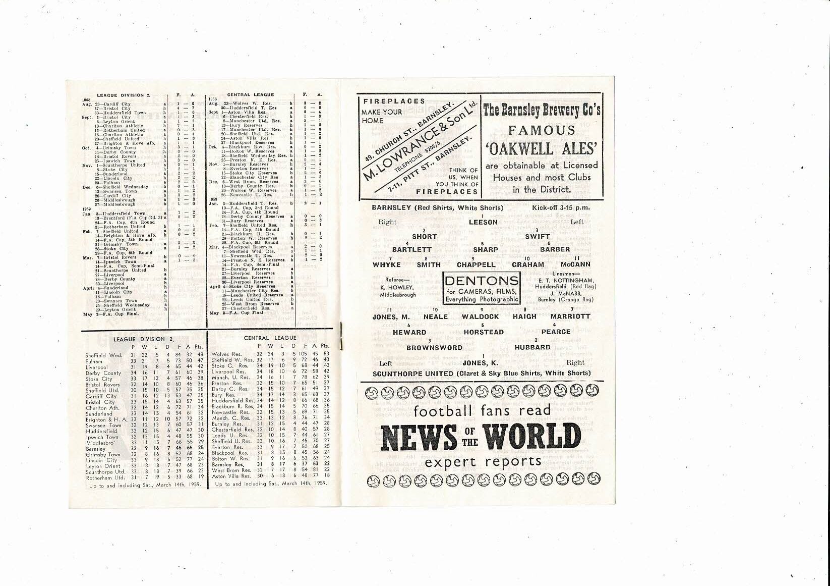 1958/59 Barnsley v Scunthorpe United Football Programme
