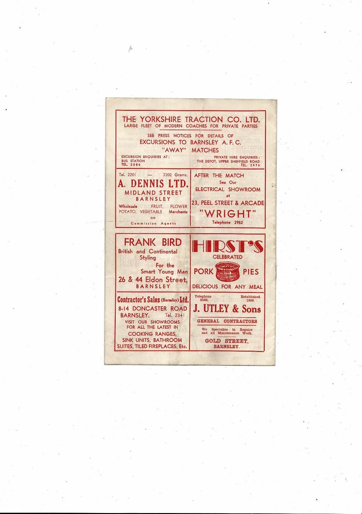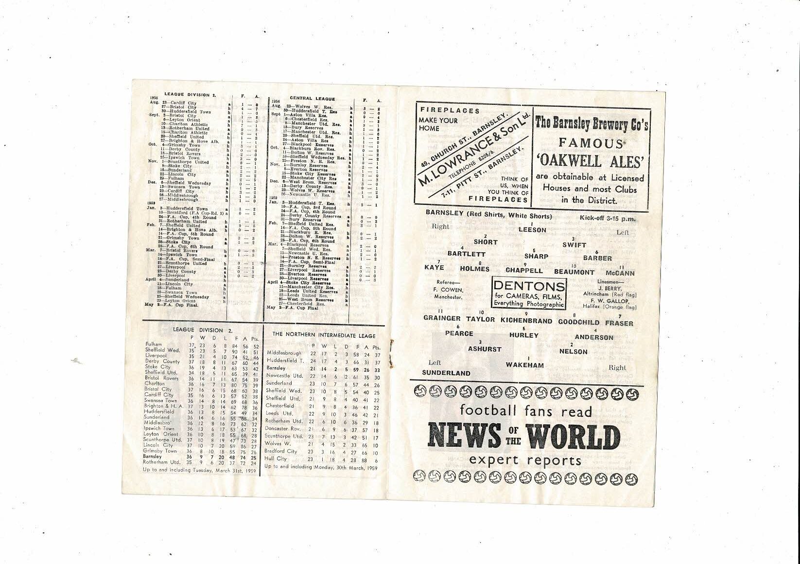1958/59 Barnsley v Sunderland Football Programme