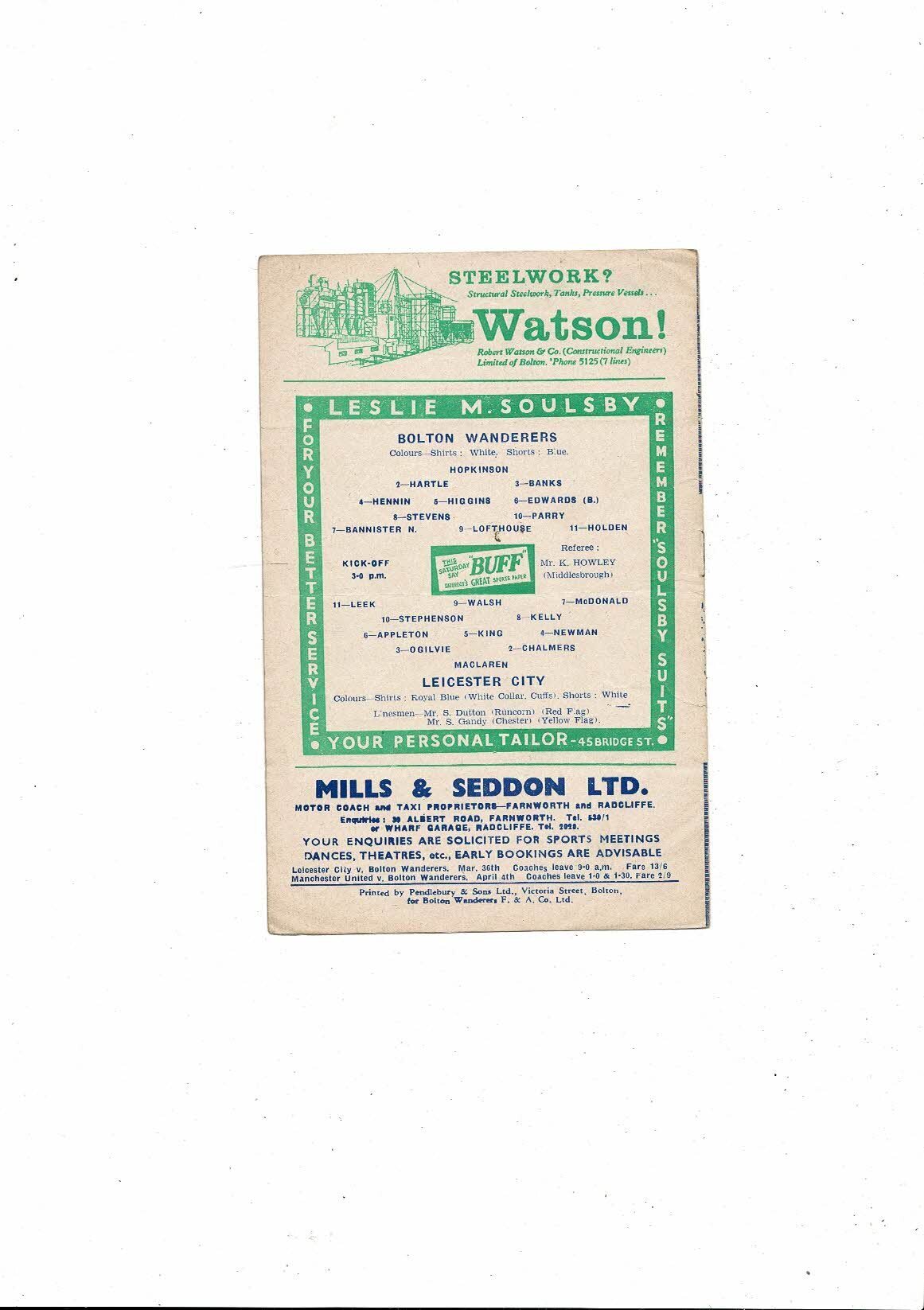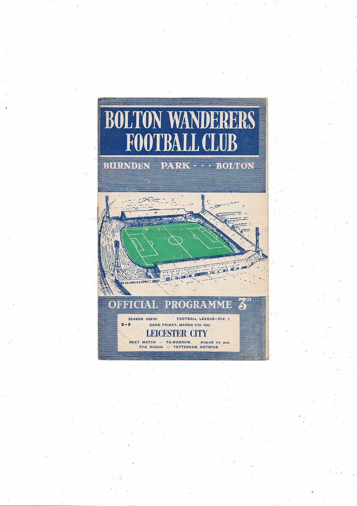 1958/59 Bolton Wanderers v Leicester City Football Programme