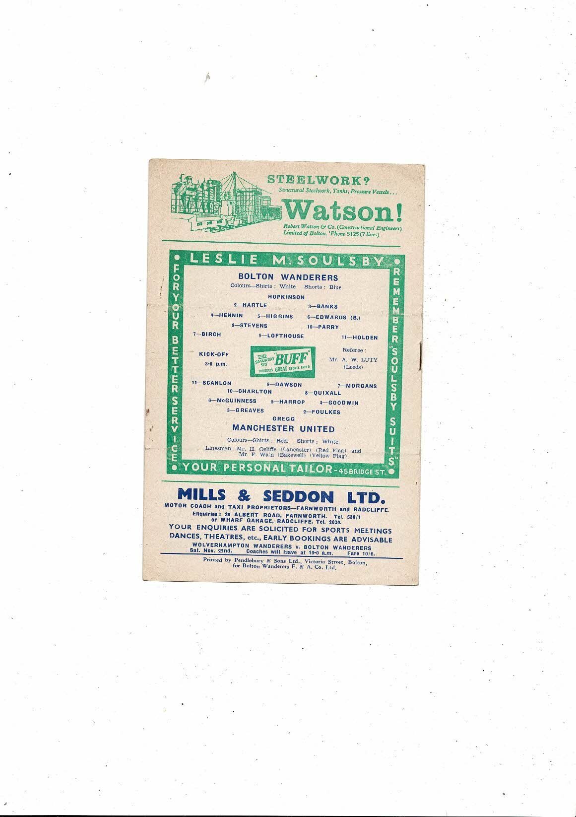 1958/59 Bolton Wanderers v Manchester United Football Programme