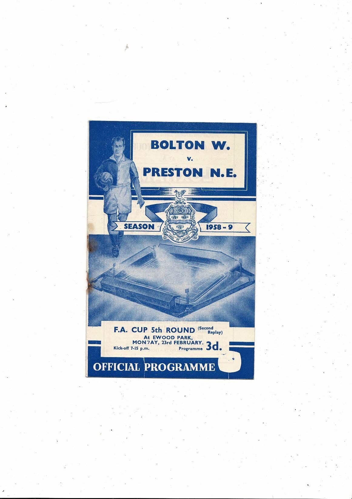 1958/59 Bolton Wanderers v Preston FA Cup 2nd Replay Football Programme @ Blackburn Rovers