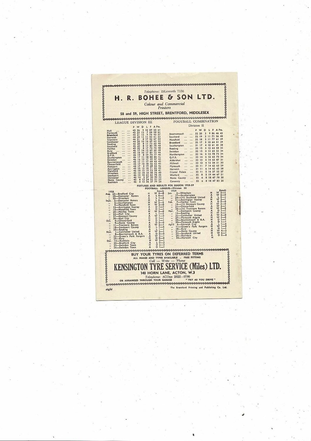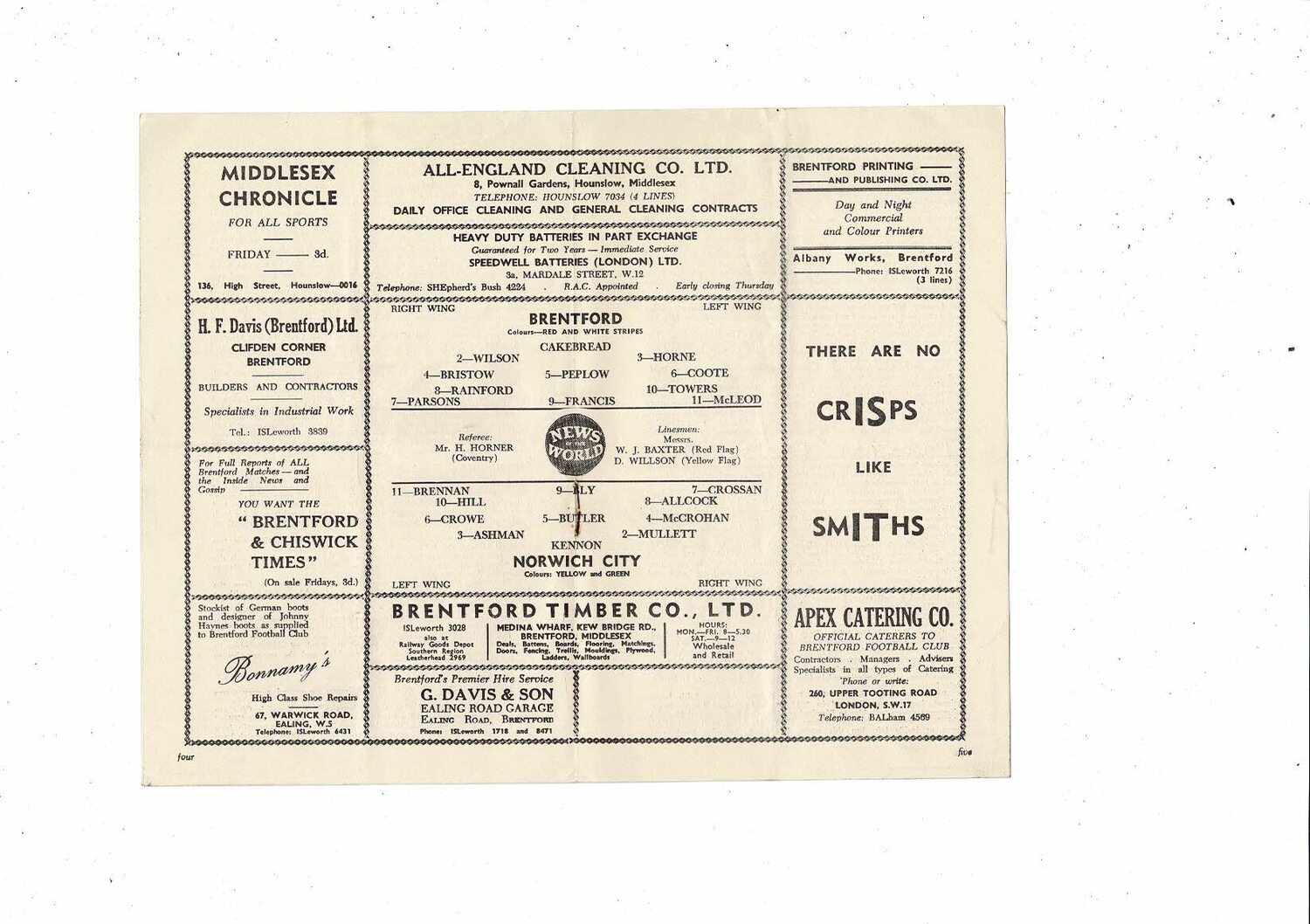 1958/59 Brentford v Norwich City Football Programme