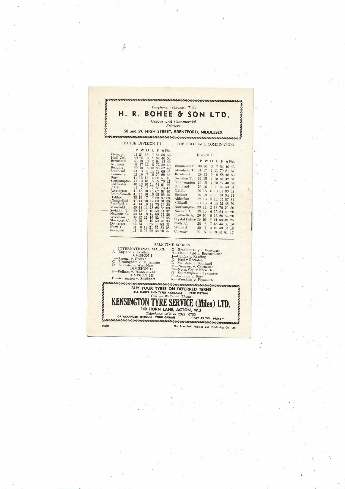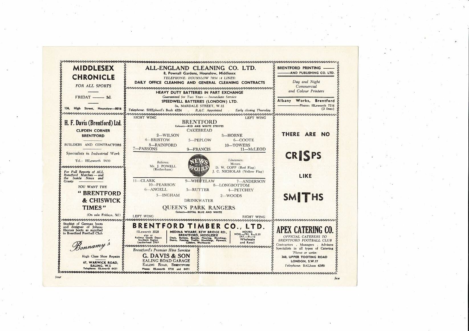 1958/59 Brentford v Queens Park Rangers Football Programme