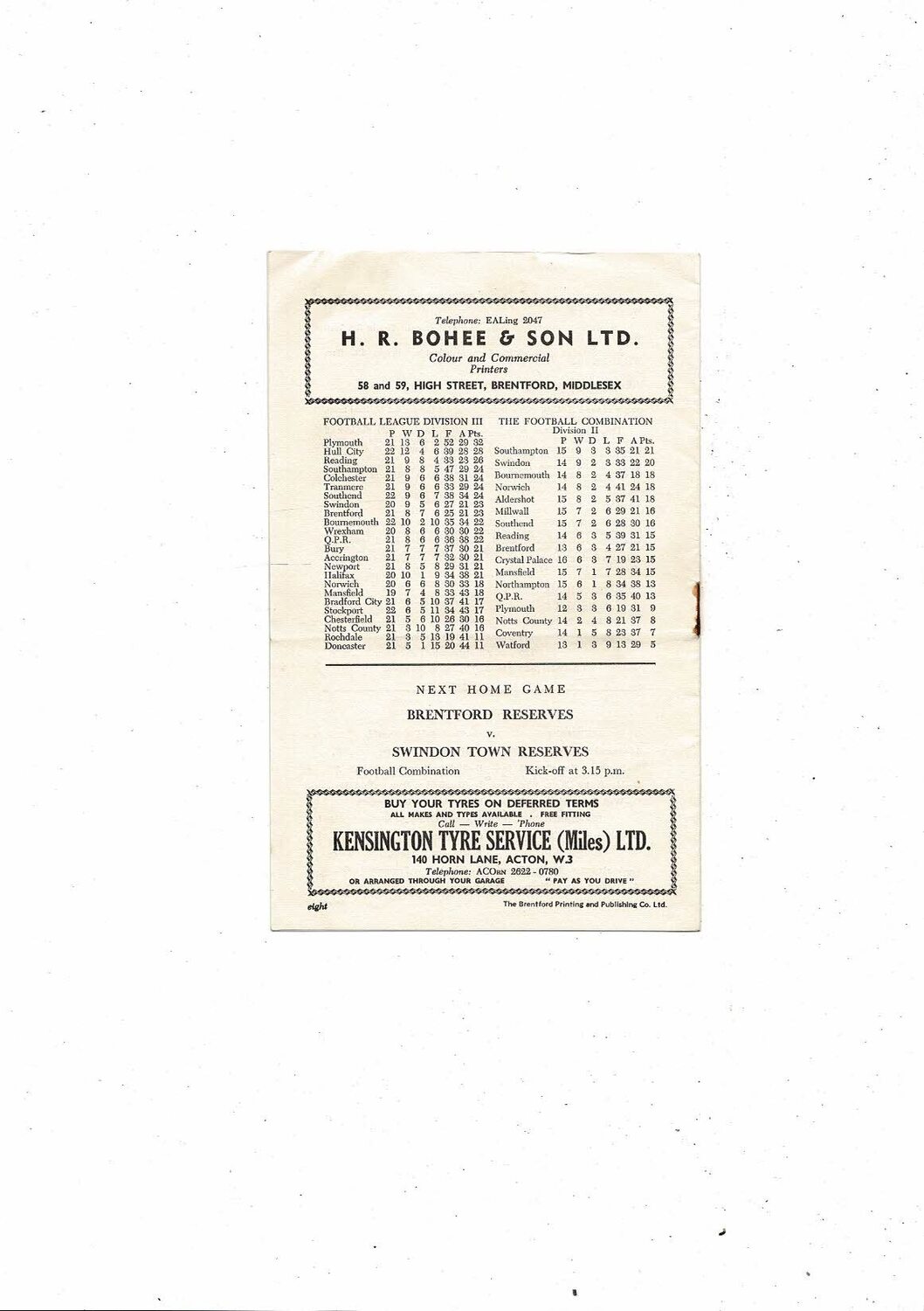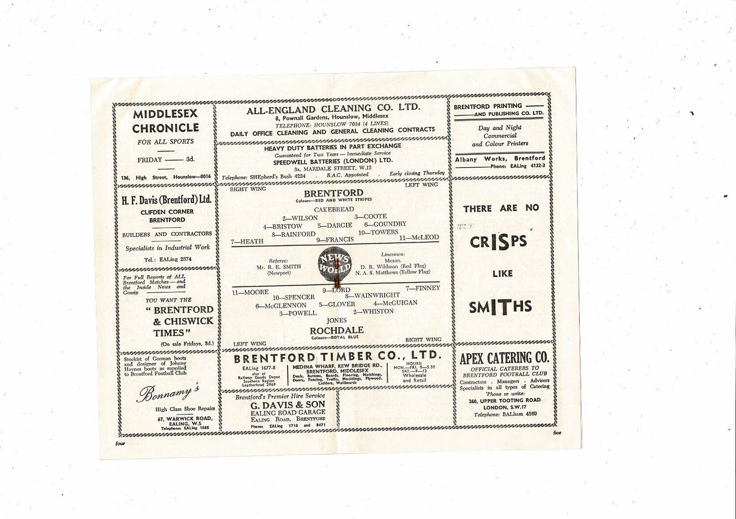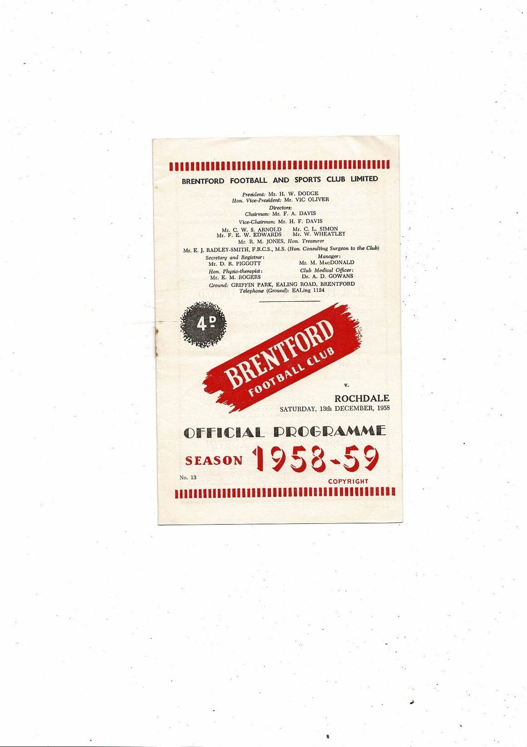 1958/59 Brentford v Rochdale Football Programme
