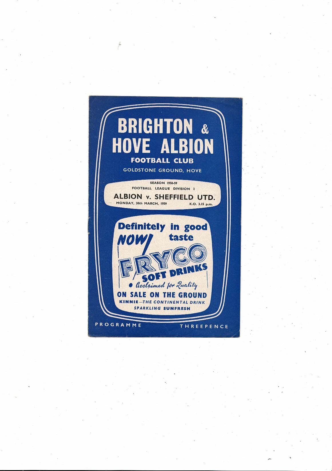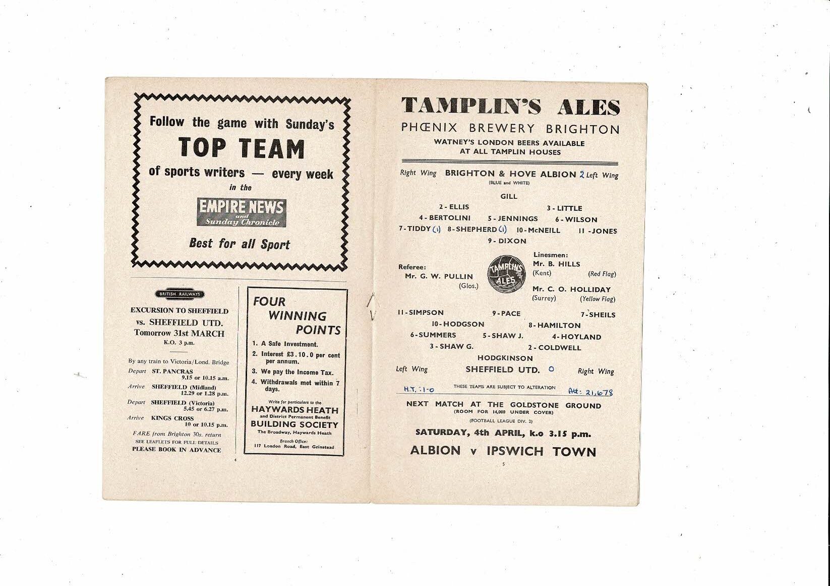 1958/59 Brighton v Sheffield United Football Programme