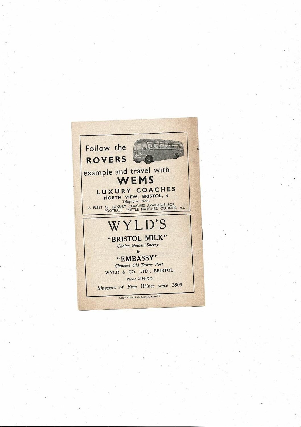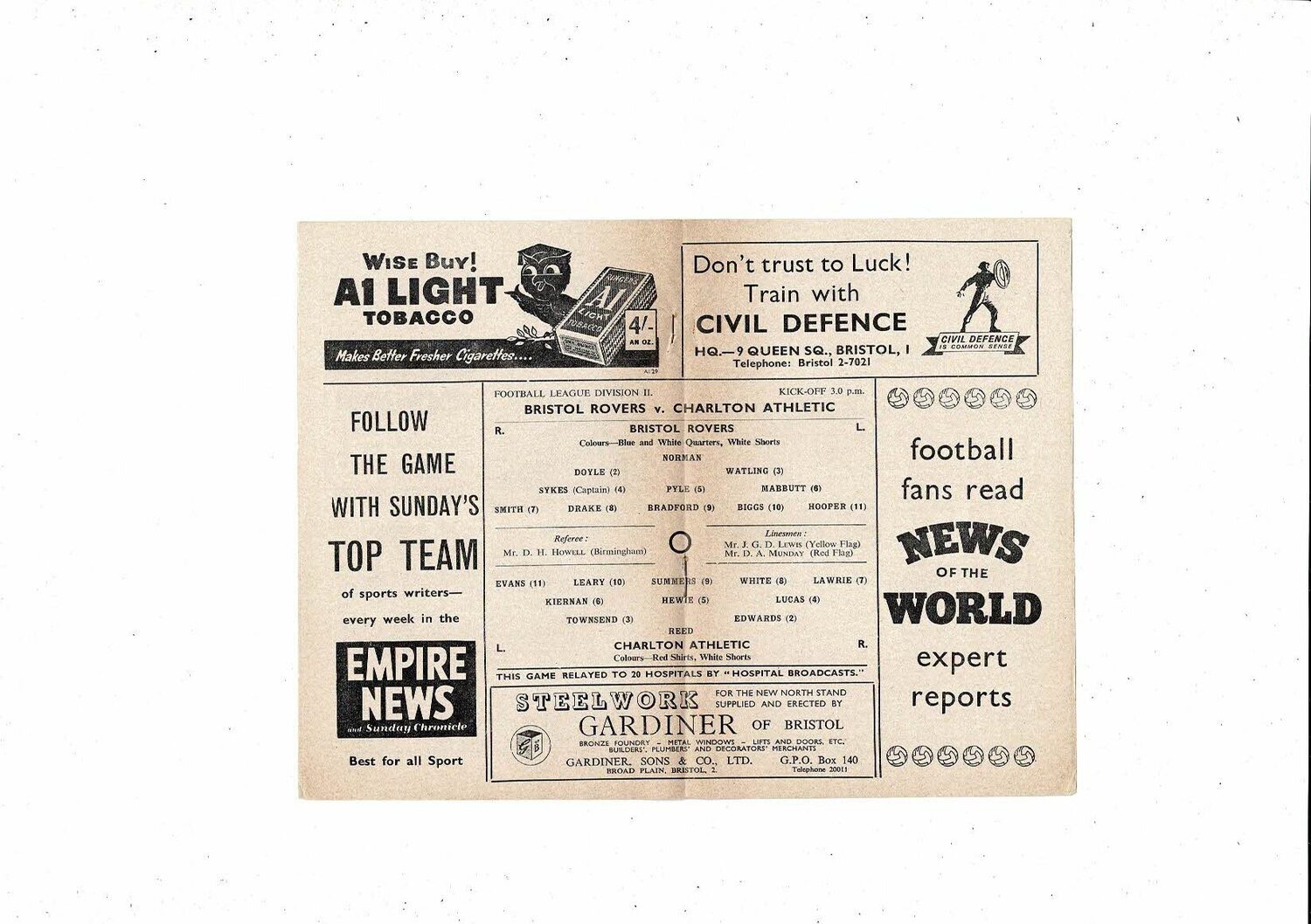 1958/59 Bristol Rovers v Charlton Athletic Football Programme