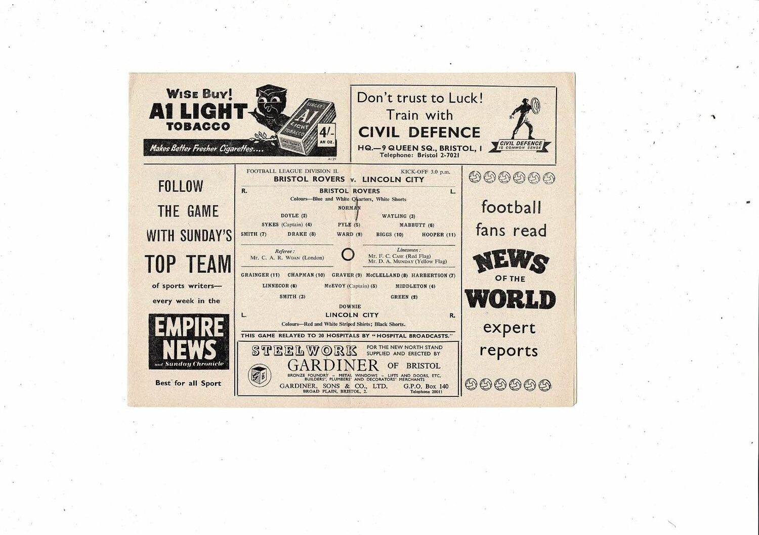 1958/59 Bristol Rovers v Lincoln City Football Programme