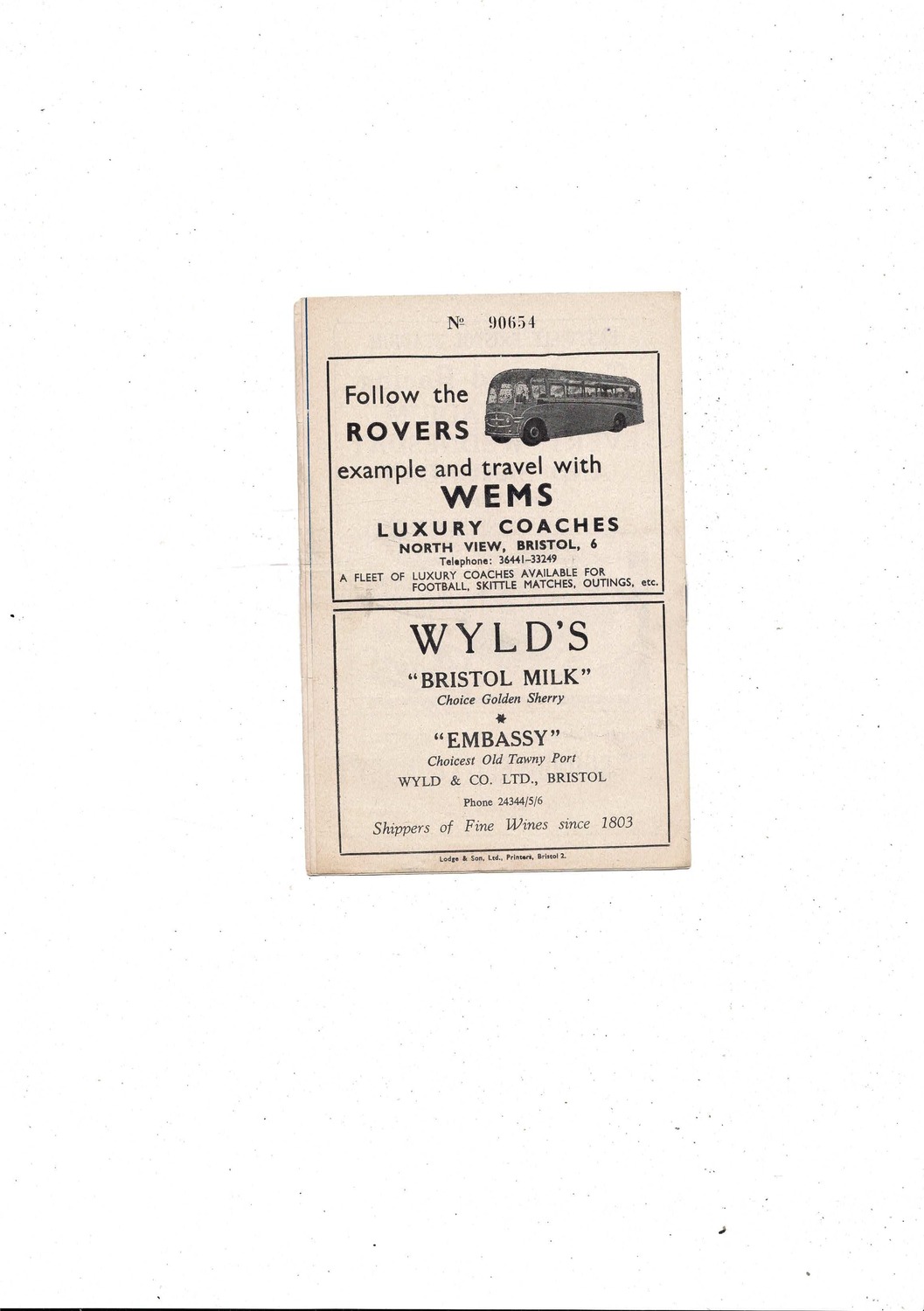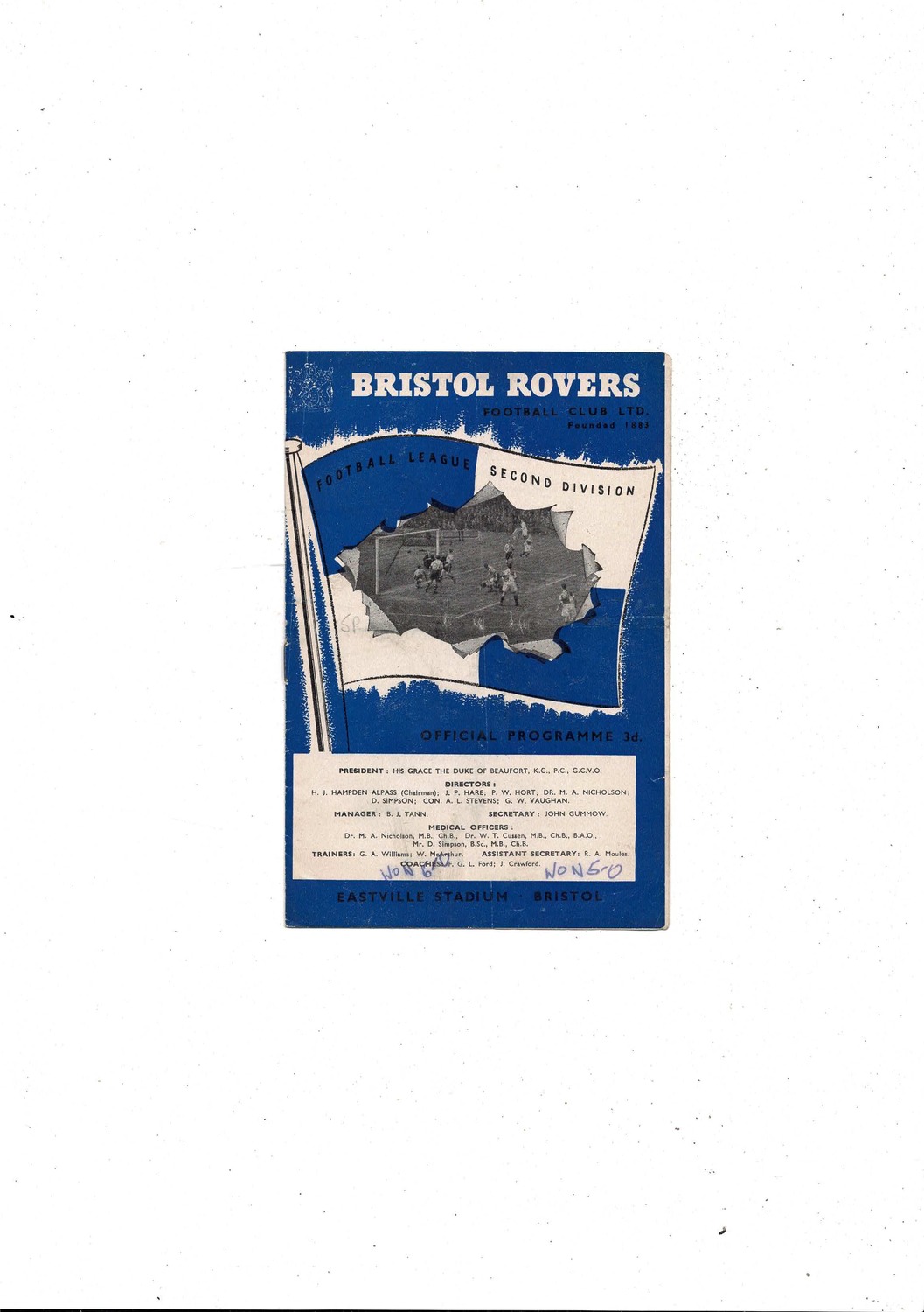 1958/59 Bristol Rovers v Rotherham United Football Programme