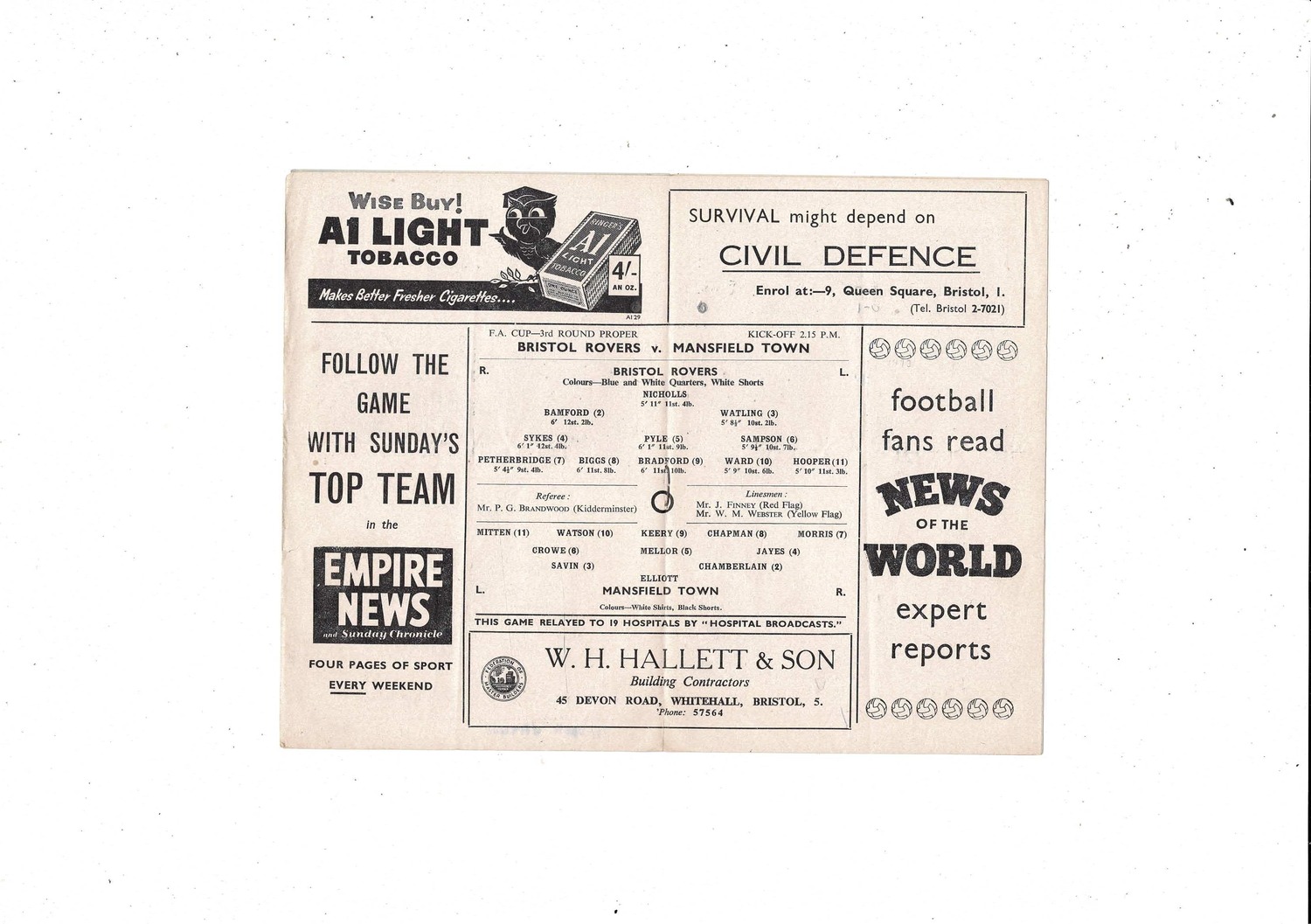 This original Football Programme is slightly creased with some staining/ discolouration, tear at both ends of spine one large, several tiny nic's, name on front, score & scorers noted. Please see scans.