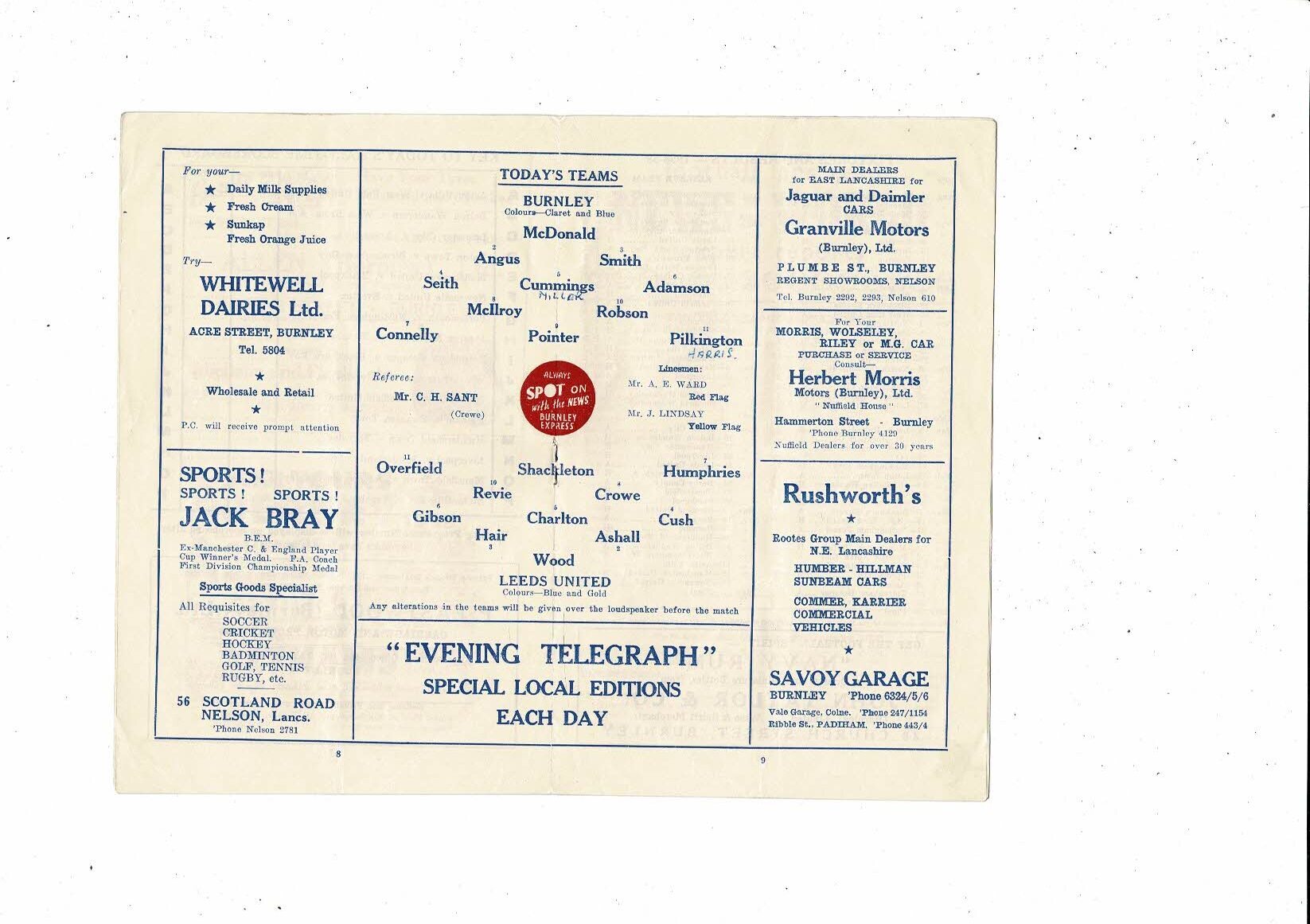 1958/59 Burnley v Leeds United Football Programme