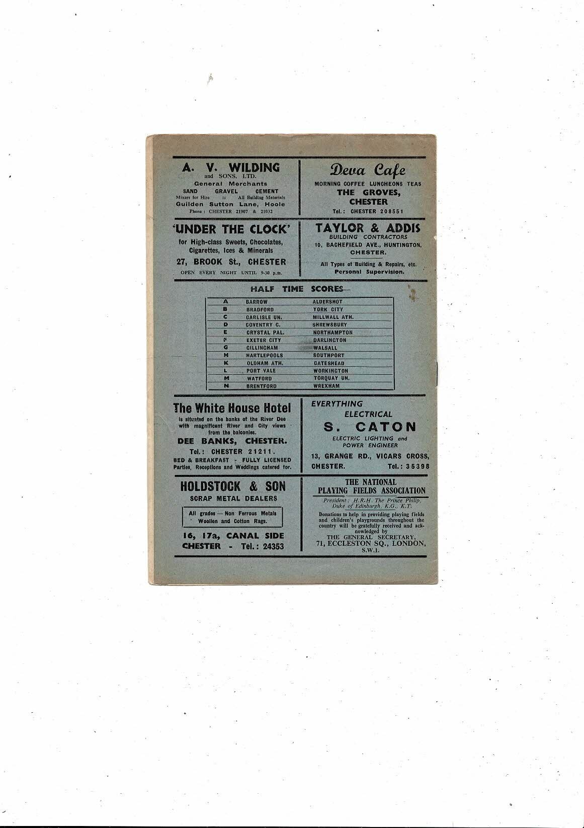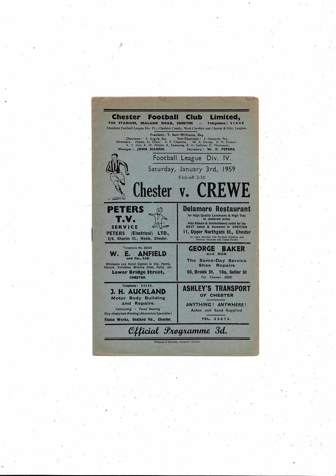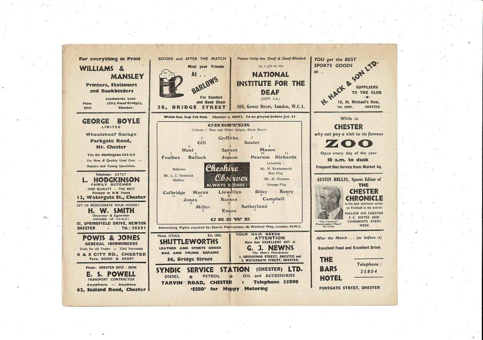 1958/59 Chester v Crewe Alexandra Football Programme January