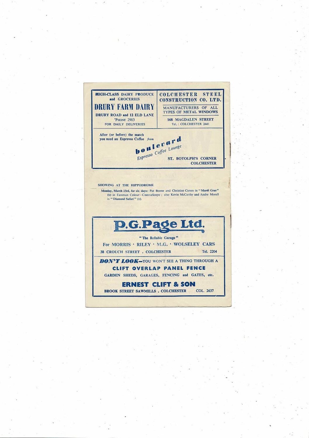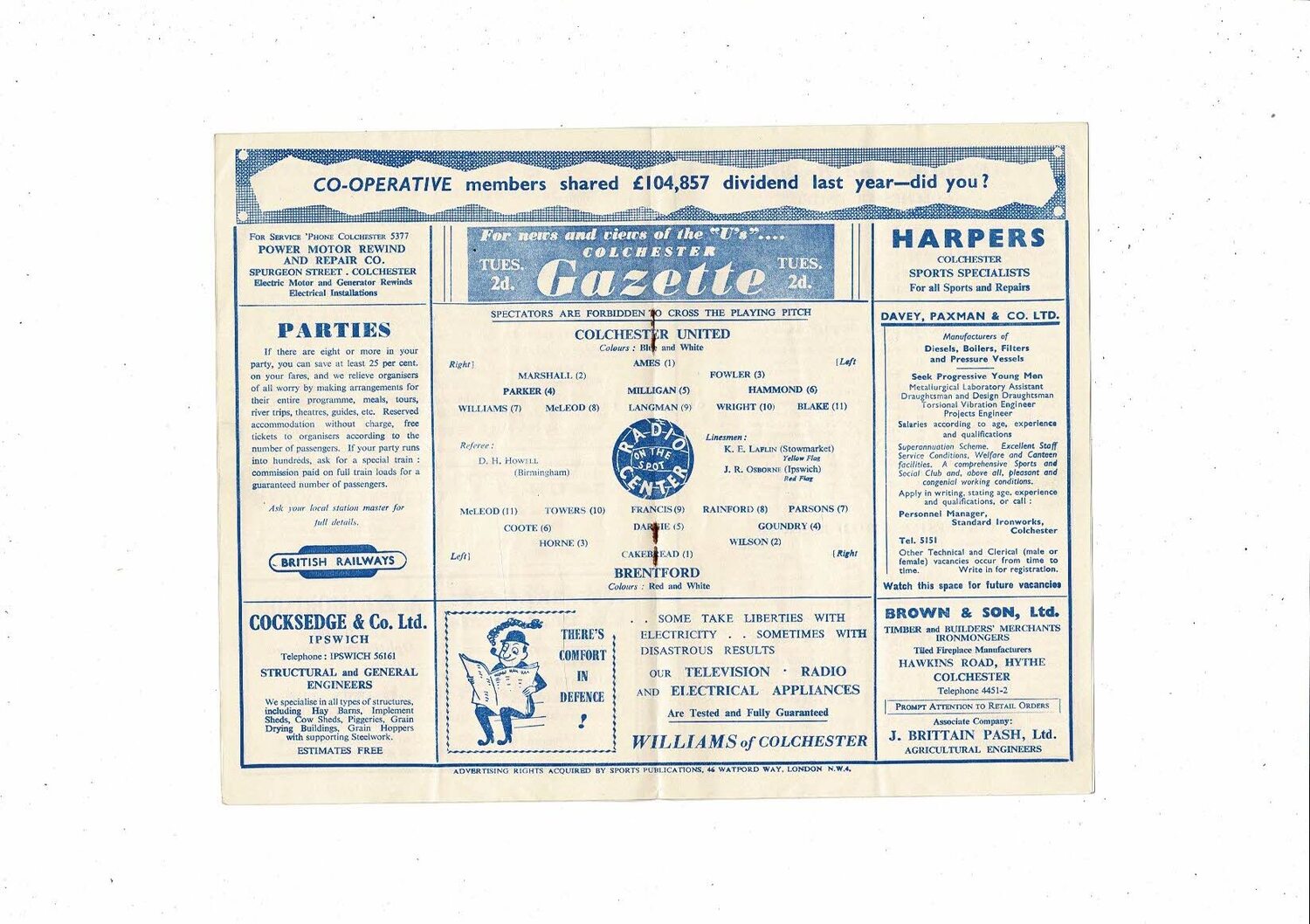 1958/59 Colchester United v Brentford Football Programme