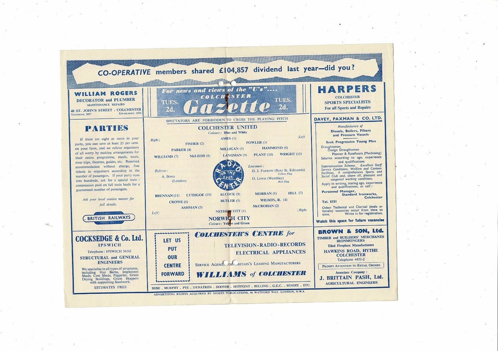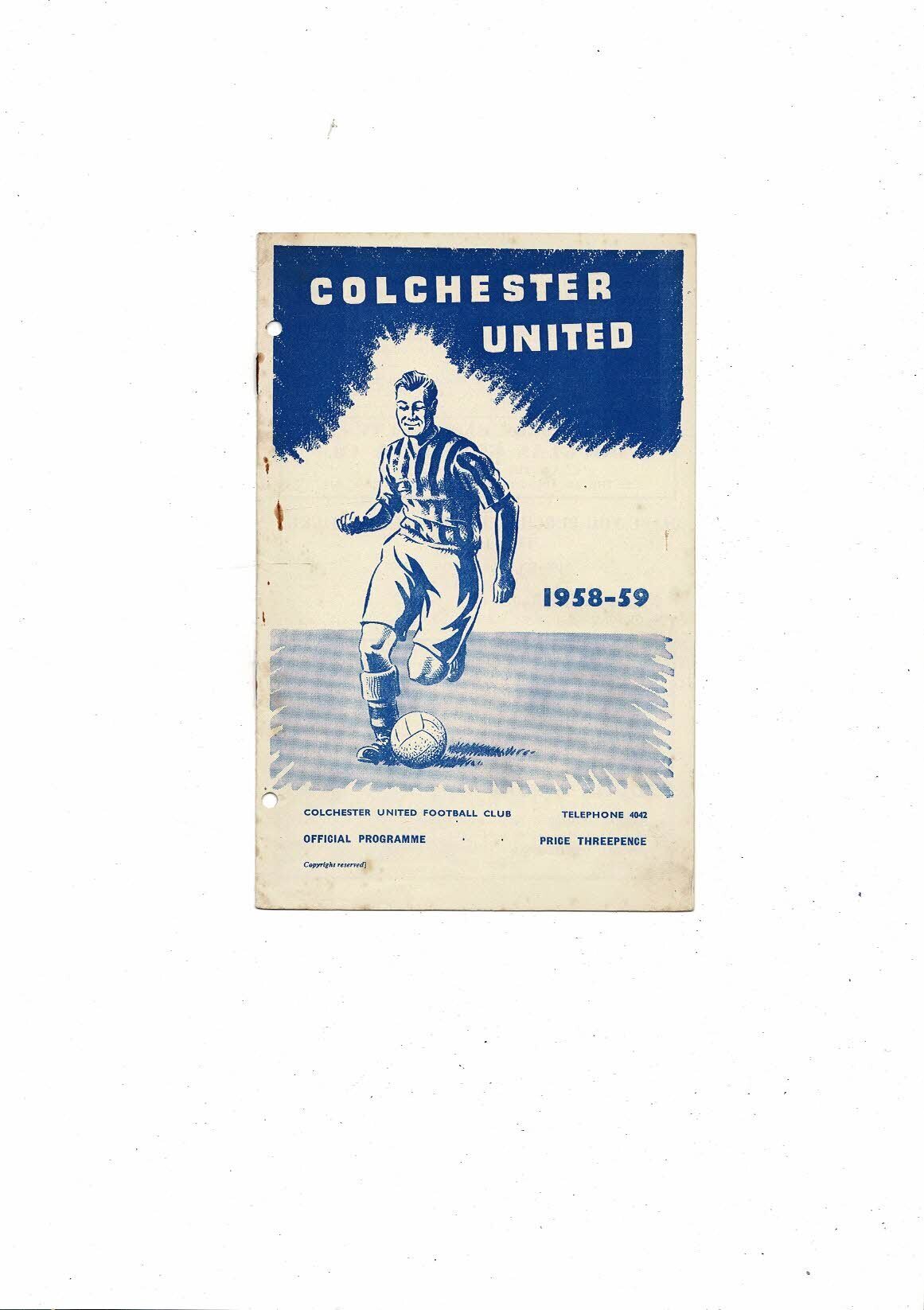 1958/59 Colchester United v Norwich City Football Programme