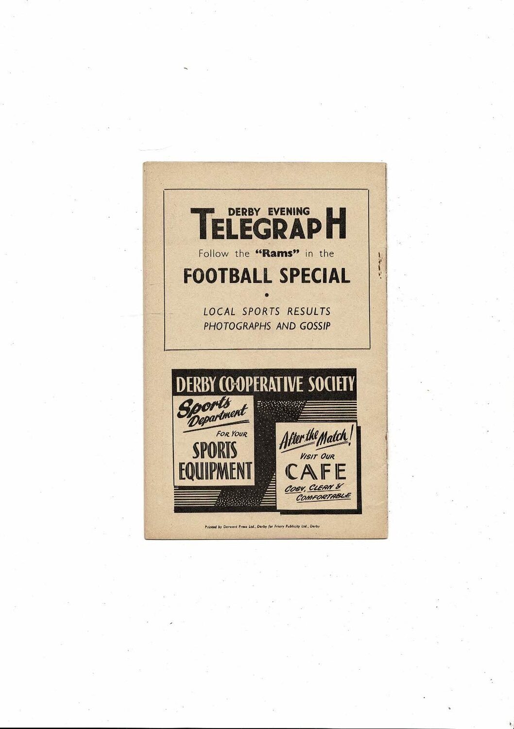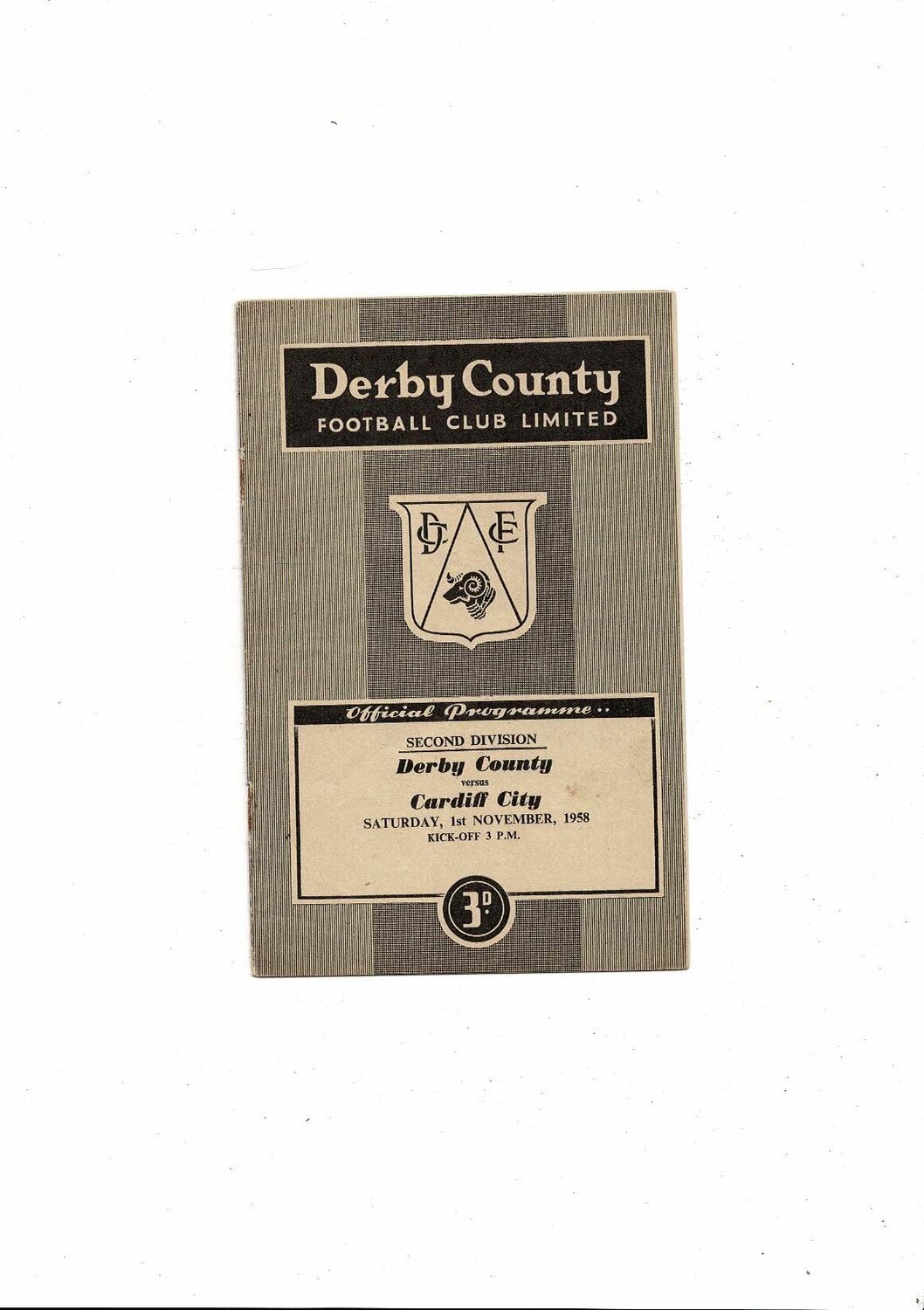 1958/59 Derby County v Cardiff City Football Programme