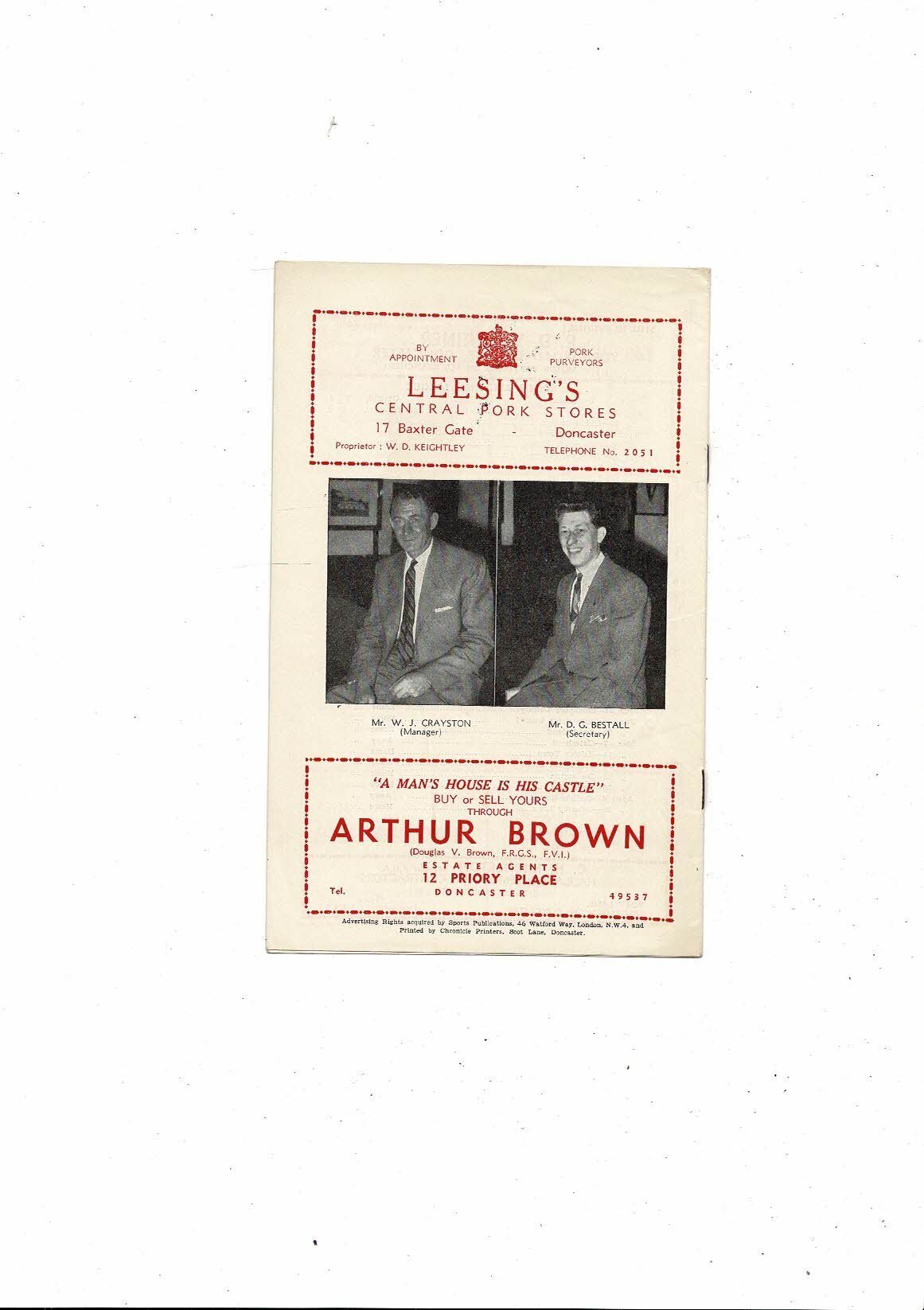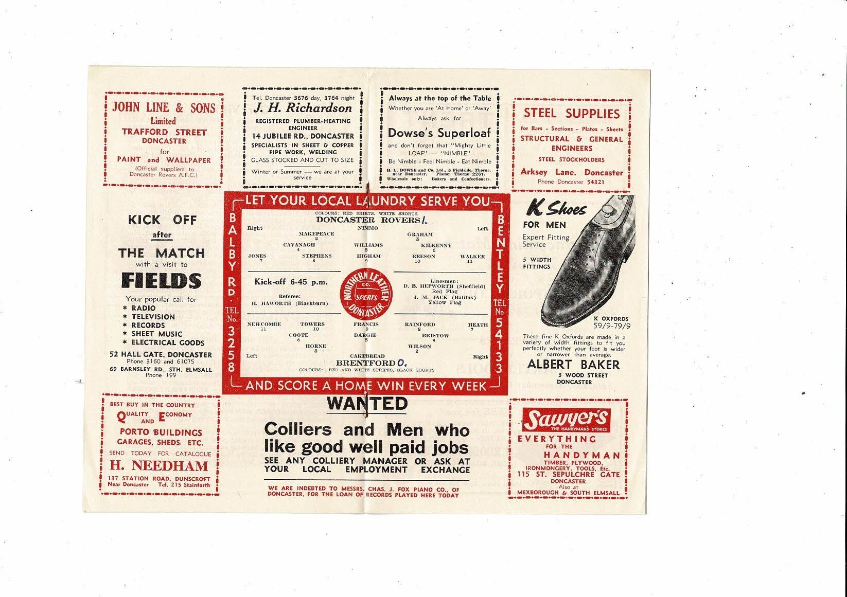 1958/59 Doncaster Rovers v Brentford Football Programme
