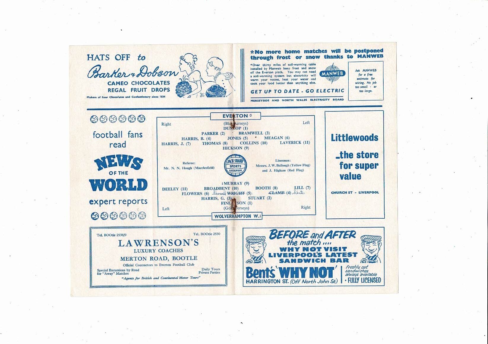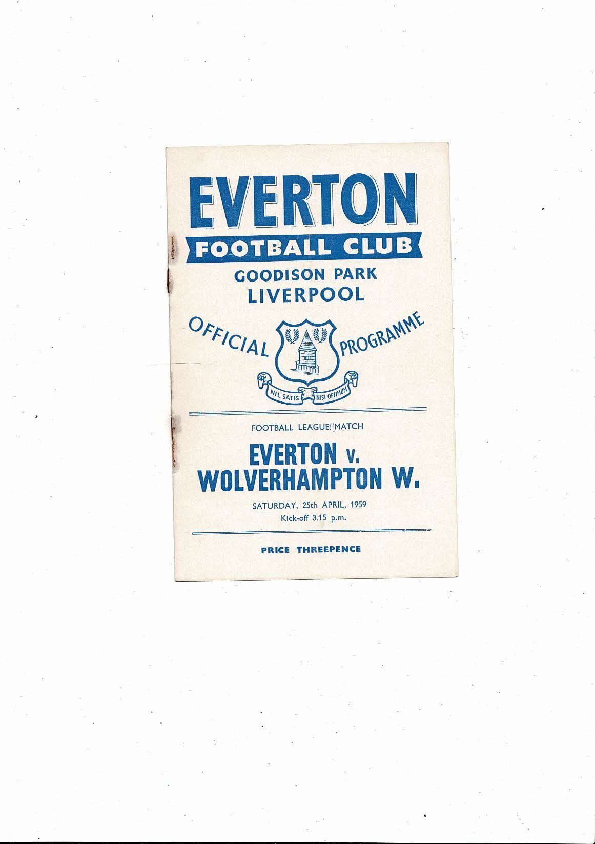 1958/59 Everton v Wolves Football Programme