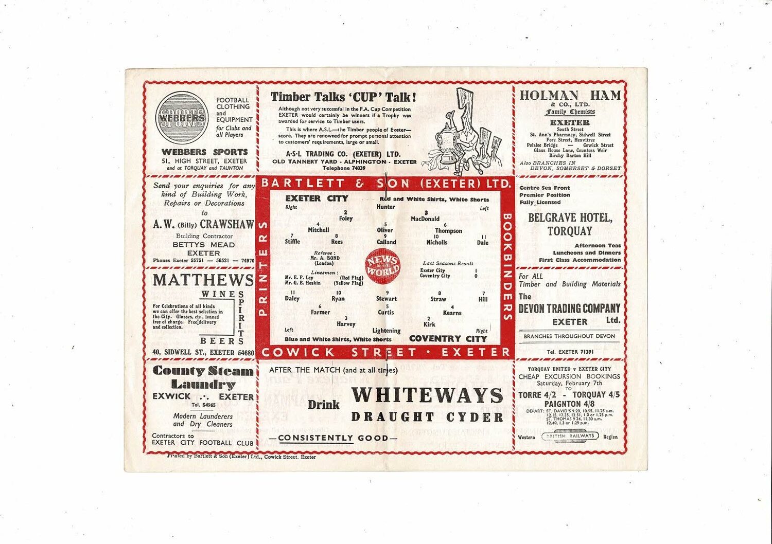 1958/59 Exeter City v Coventry City Football Programme