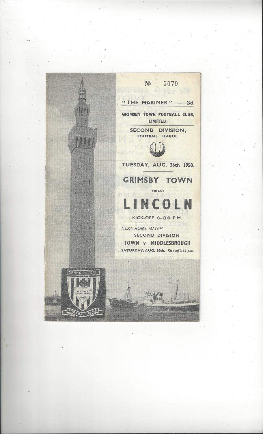 1958/59 Grimsby Town v Lincoln City Football Programme