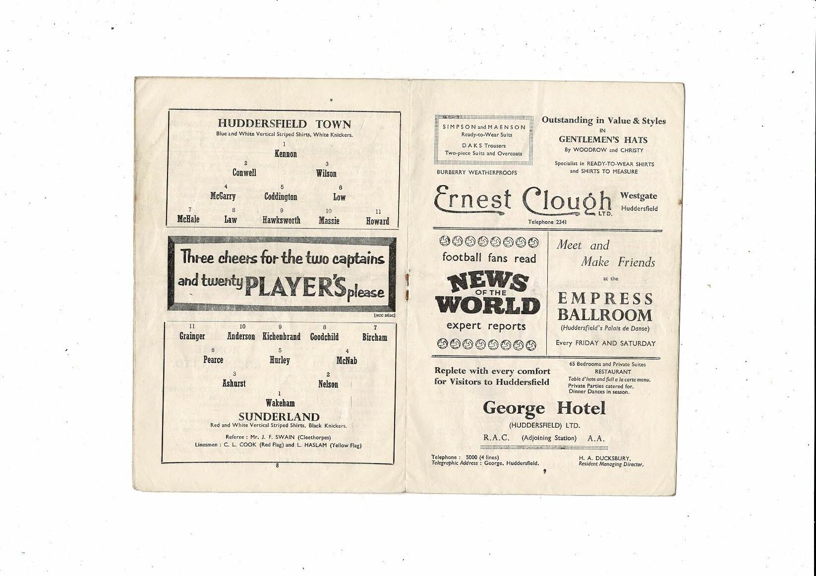 1958/59 Huddersfield Town v Sunderland Football Programme
