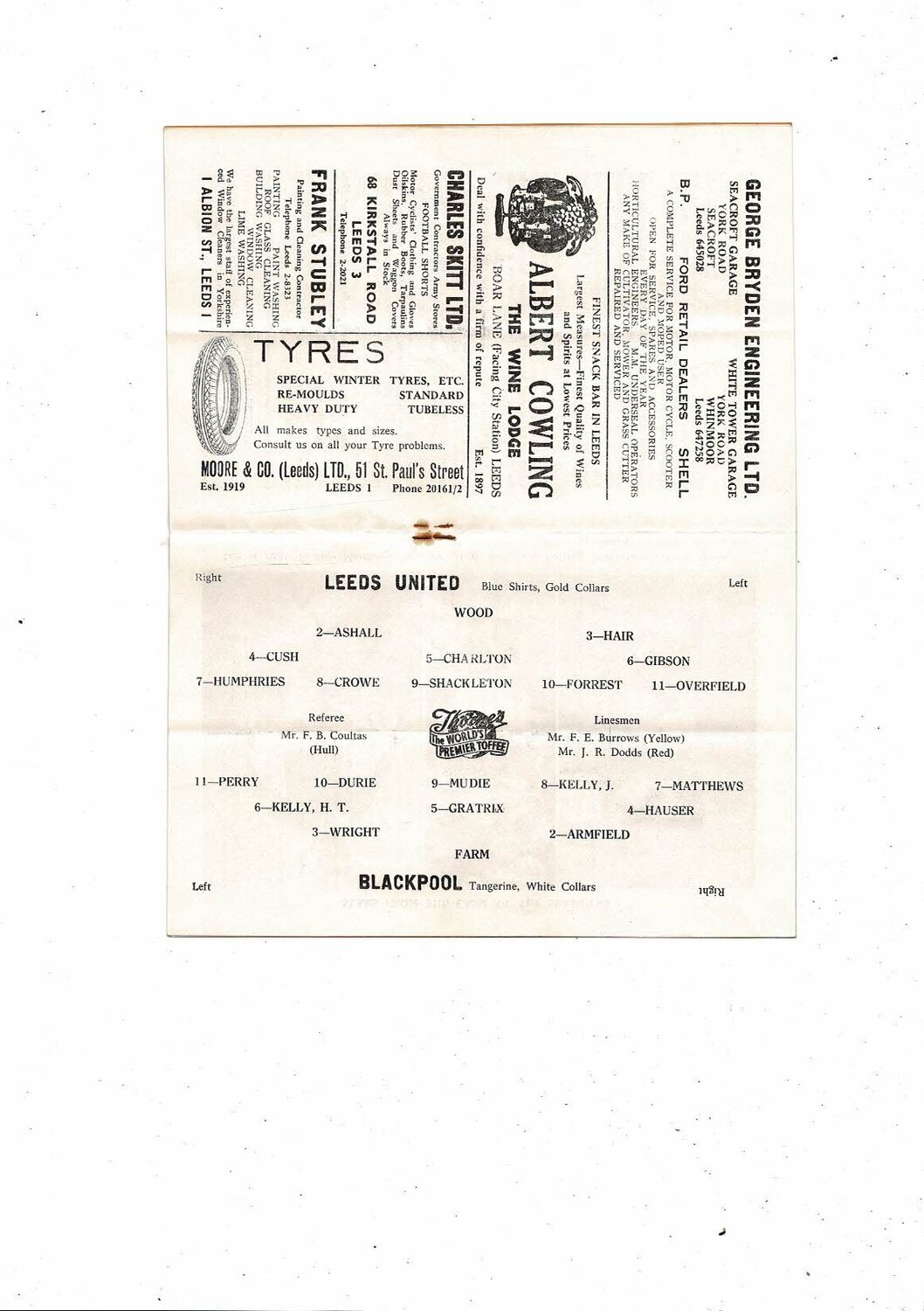 1958/59 Leeds United v Blackpool Football Programme