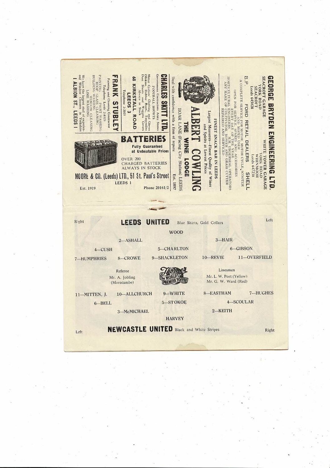 1958/59 Leeds United v Newcastle United Football Programme