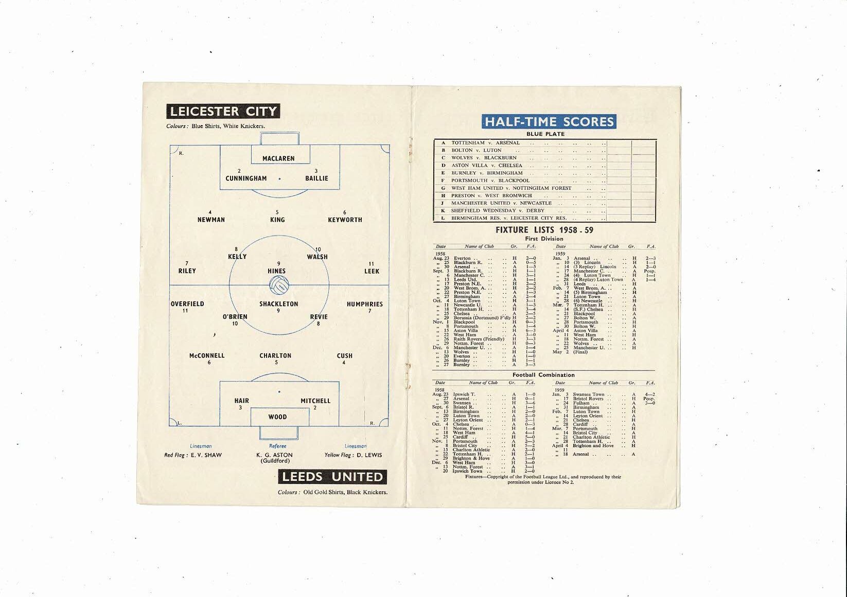 1958/59 Leicester City v Leeds United Football Programme