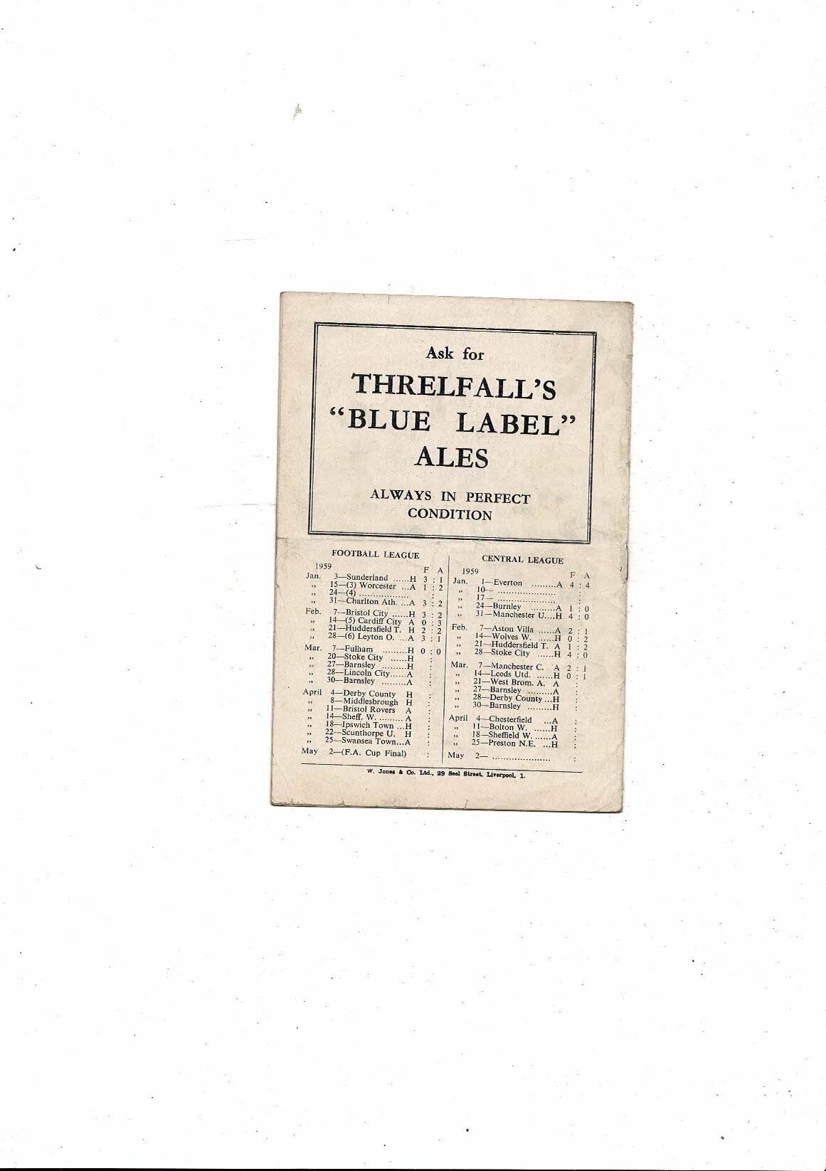 1958/59 Liverpool v Stoke City Football Programme