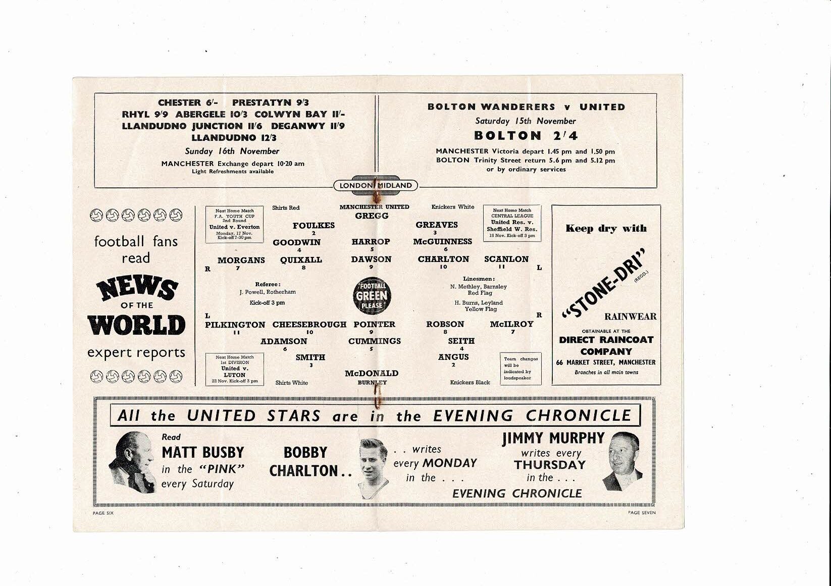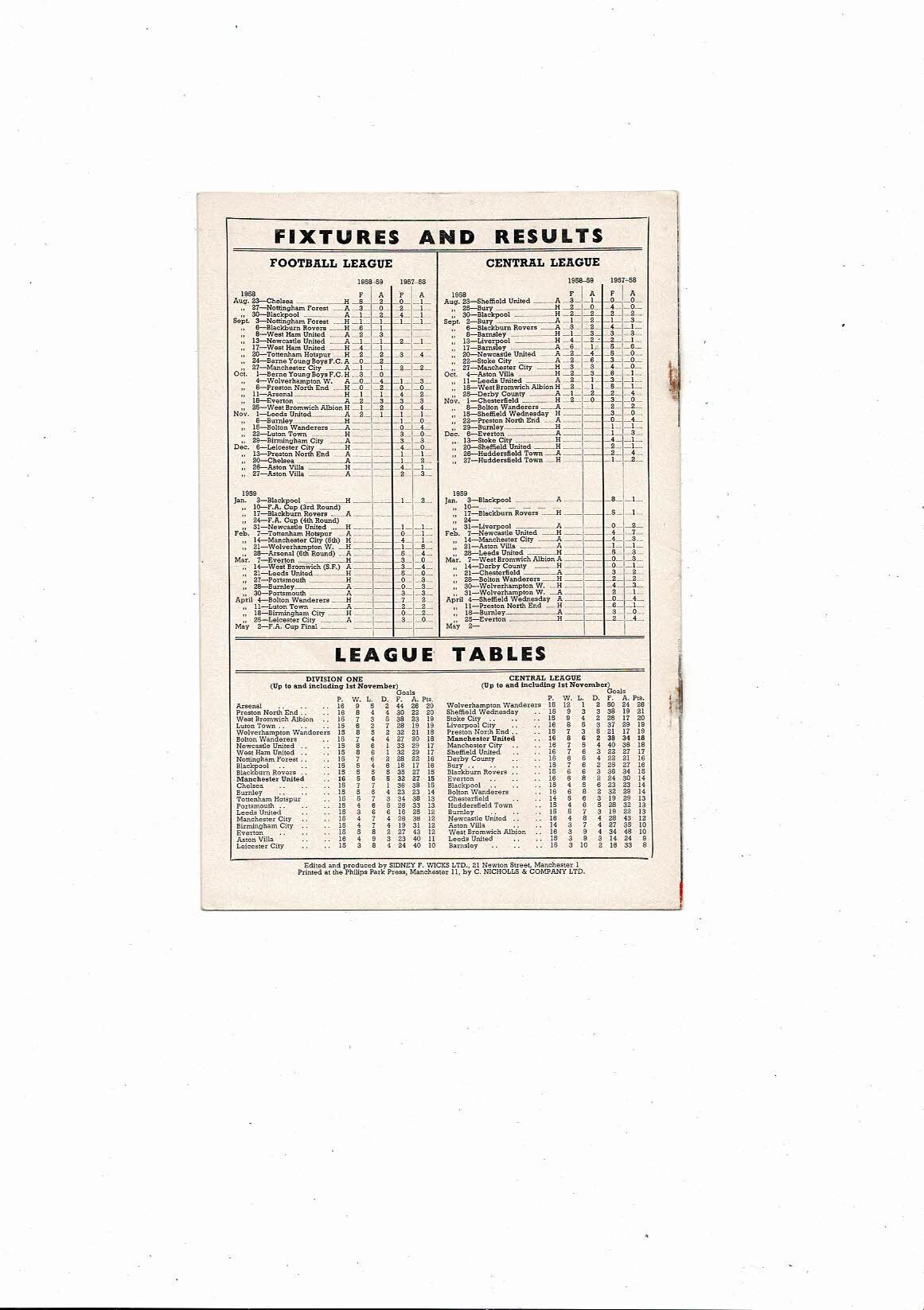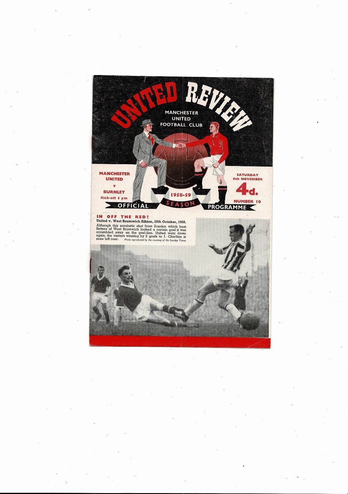 1958/59 Manchester United v Burnley Football Programme