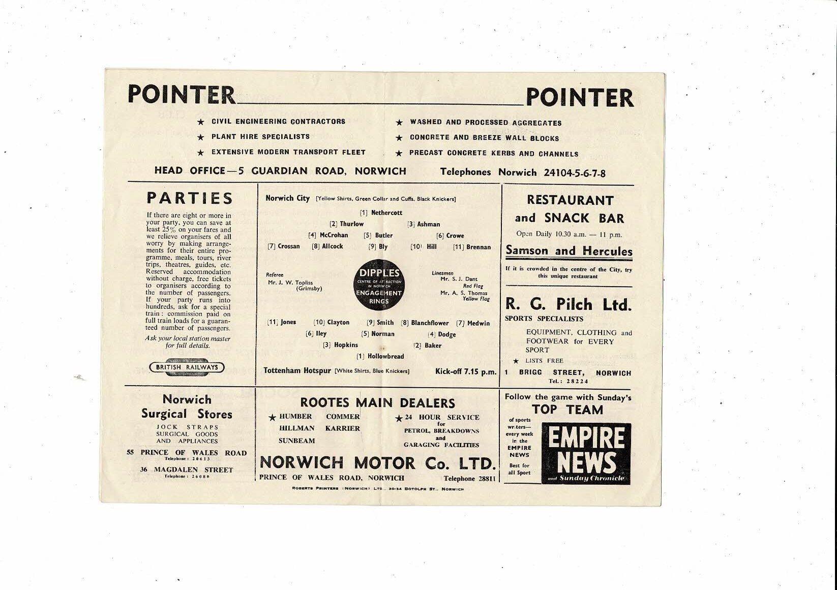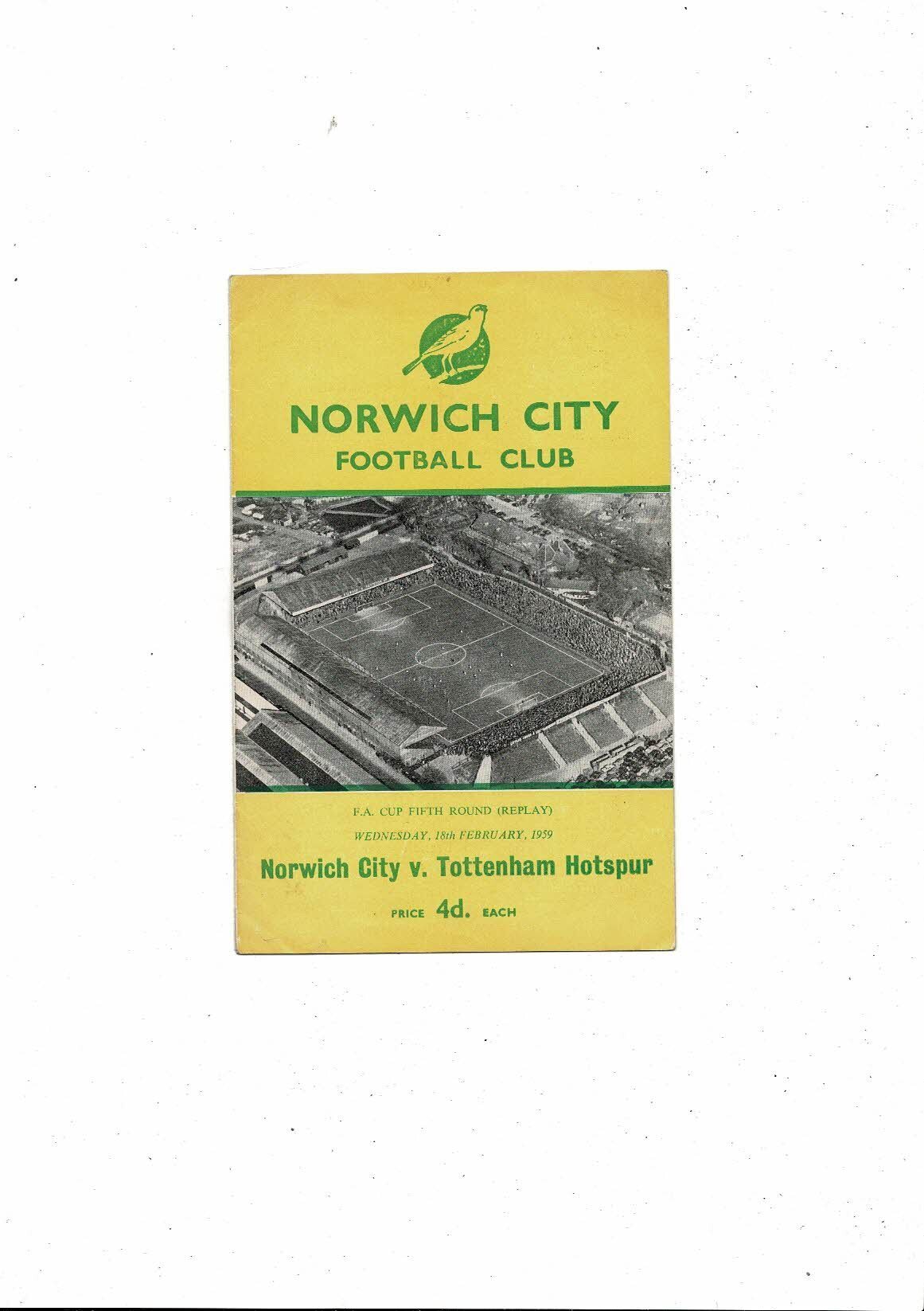 1958/59 Norwich City v Tottenham Hotspur FA Cup Replay Football Programme