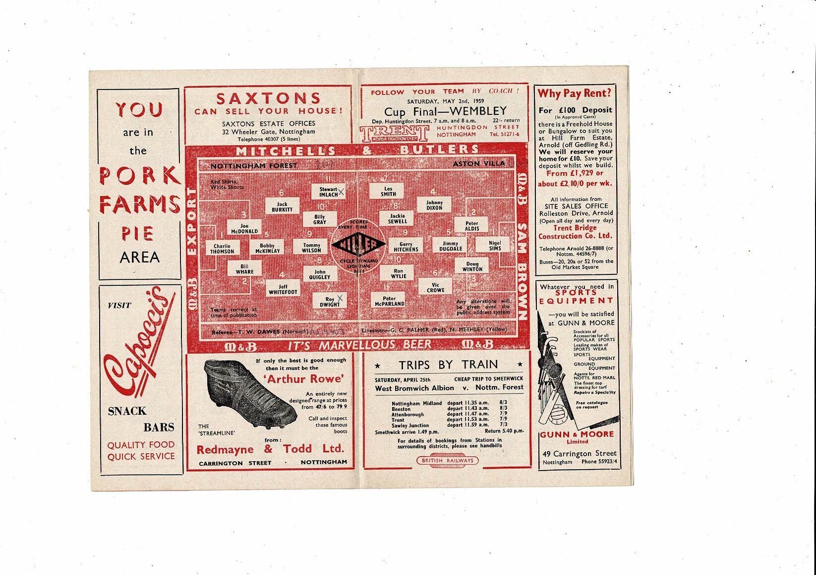 1958/59 Nottingham Forest v Aston Villa Football Programme