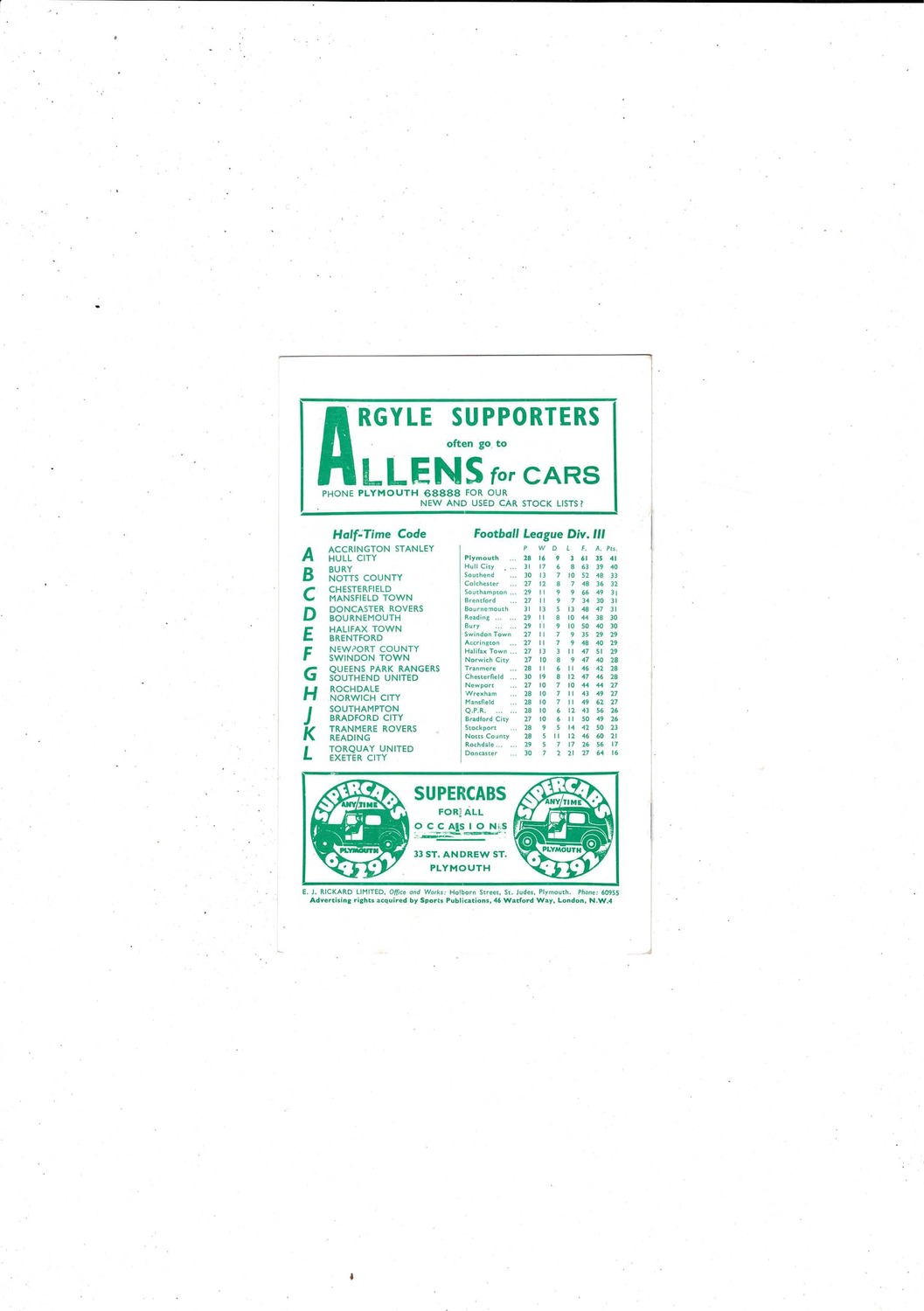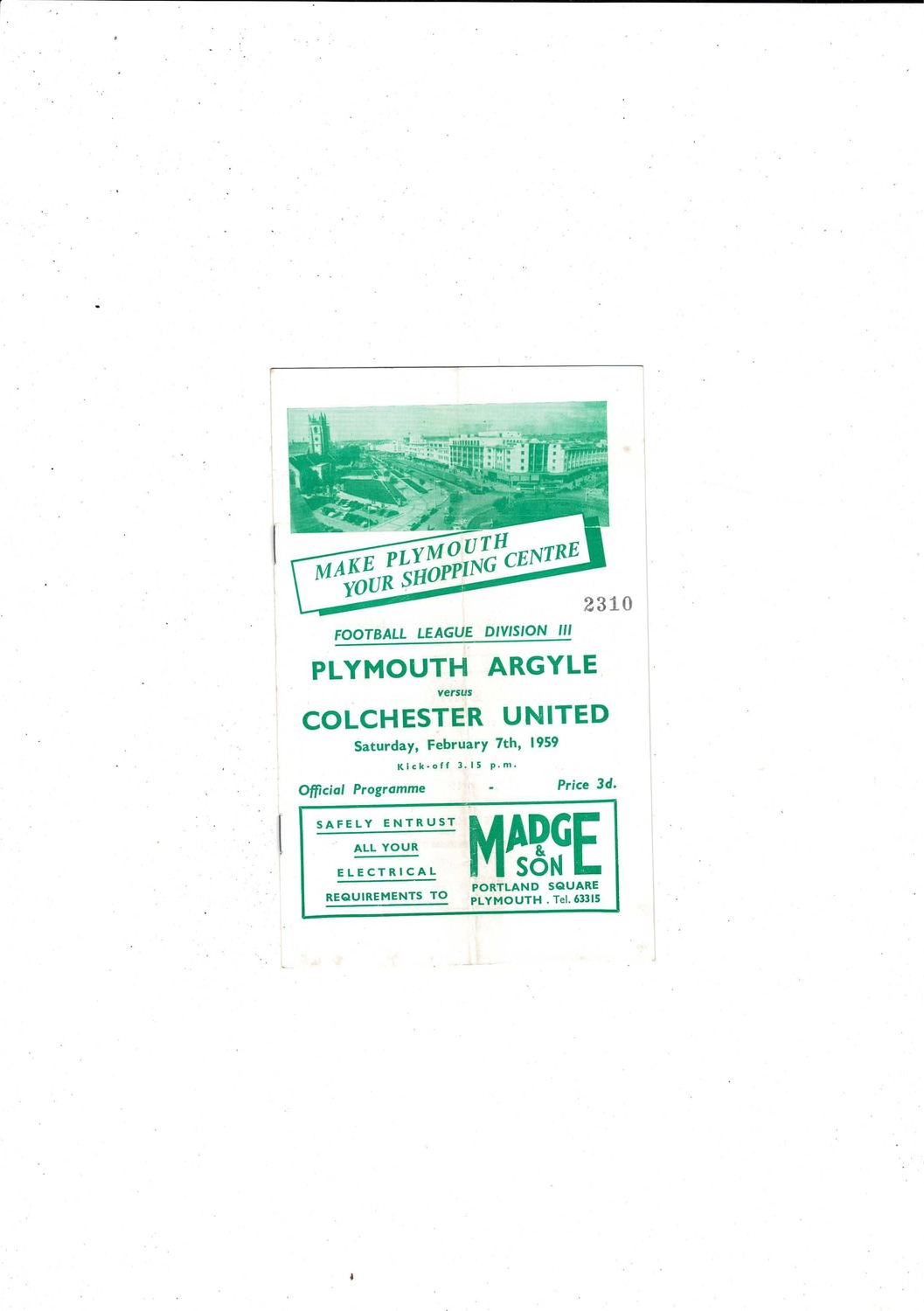 1958/59 Plymouth Argyle v Colchester United Football Programme