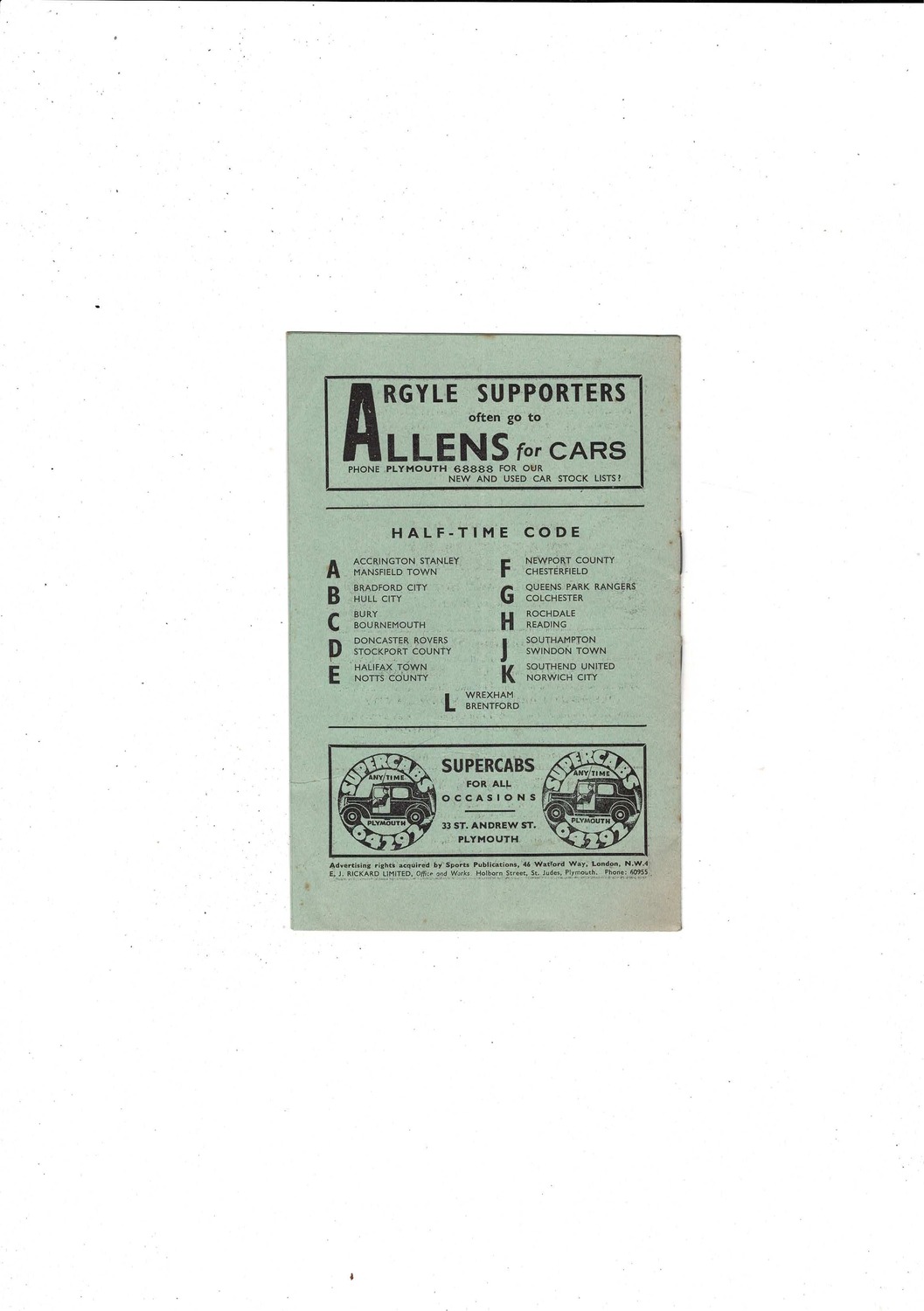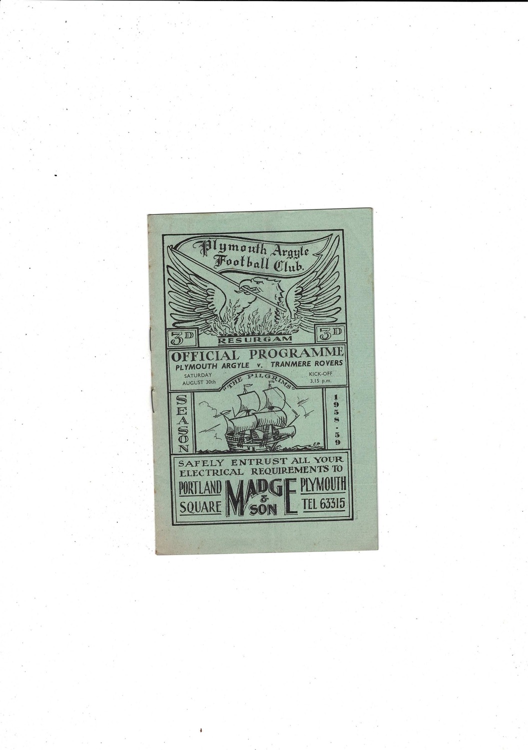 1958/59 Plymouth Argyle v Tranmere Rovers Football Programme