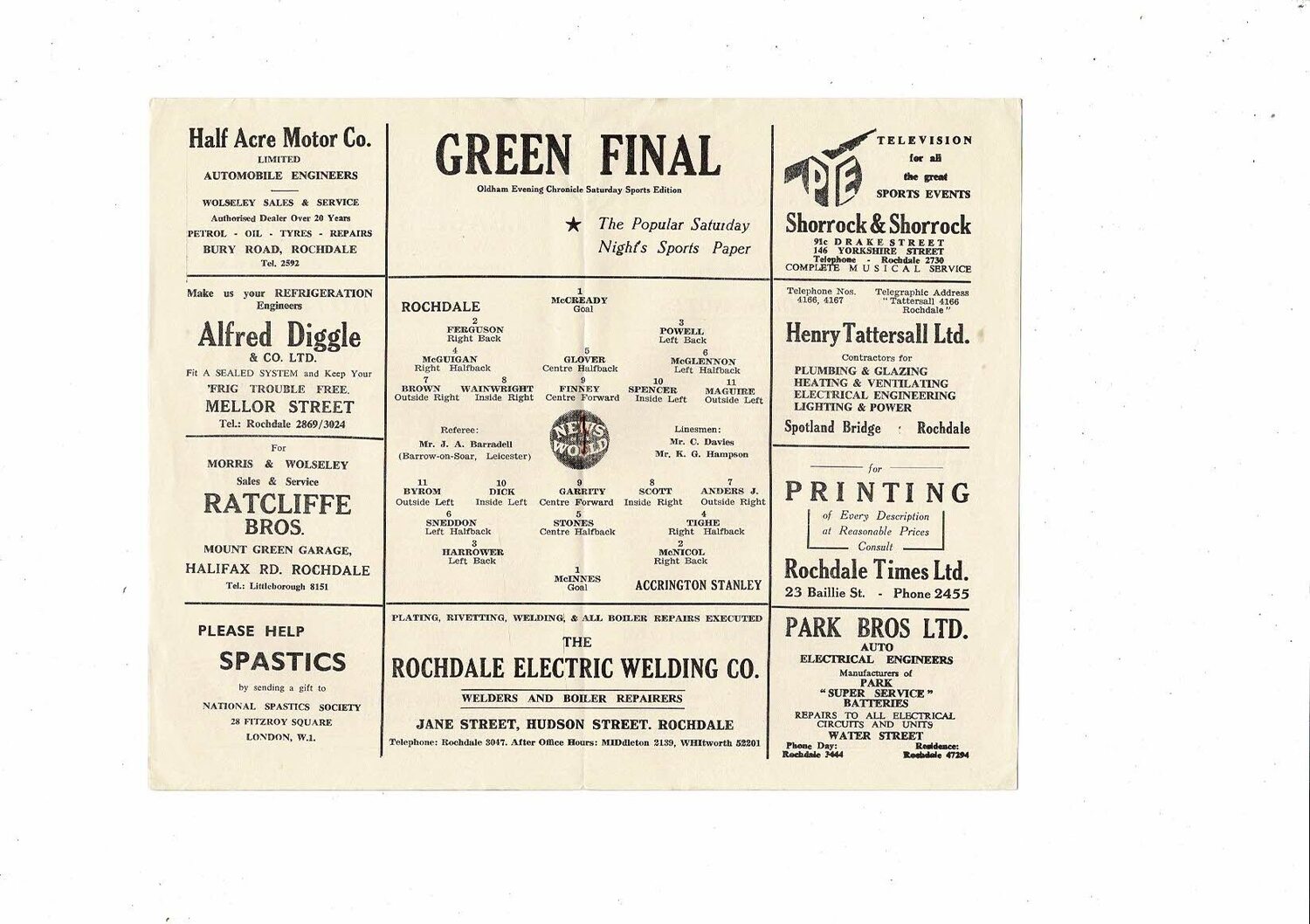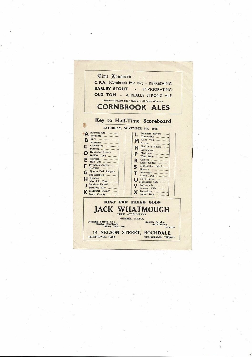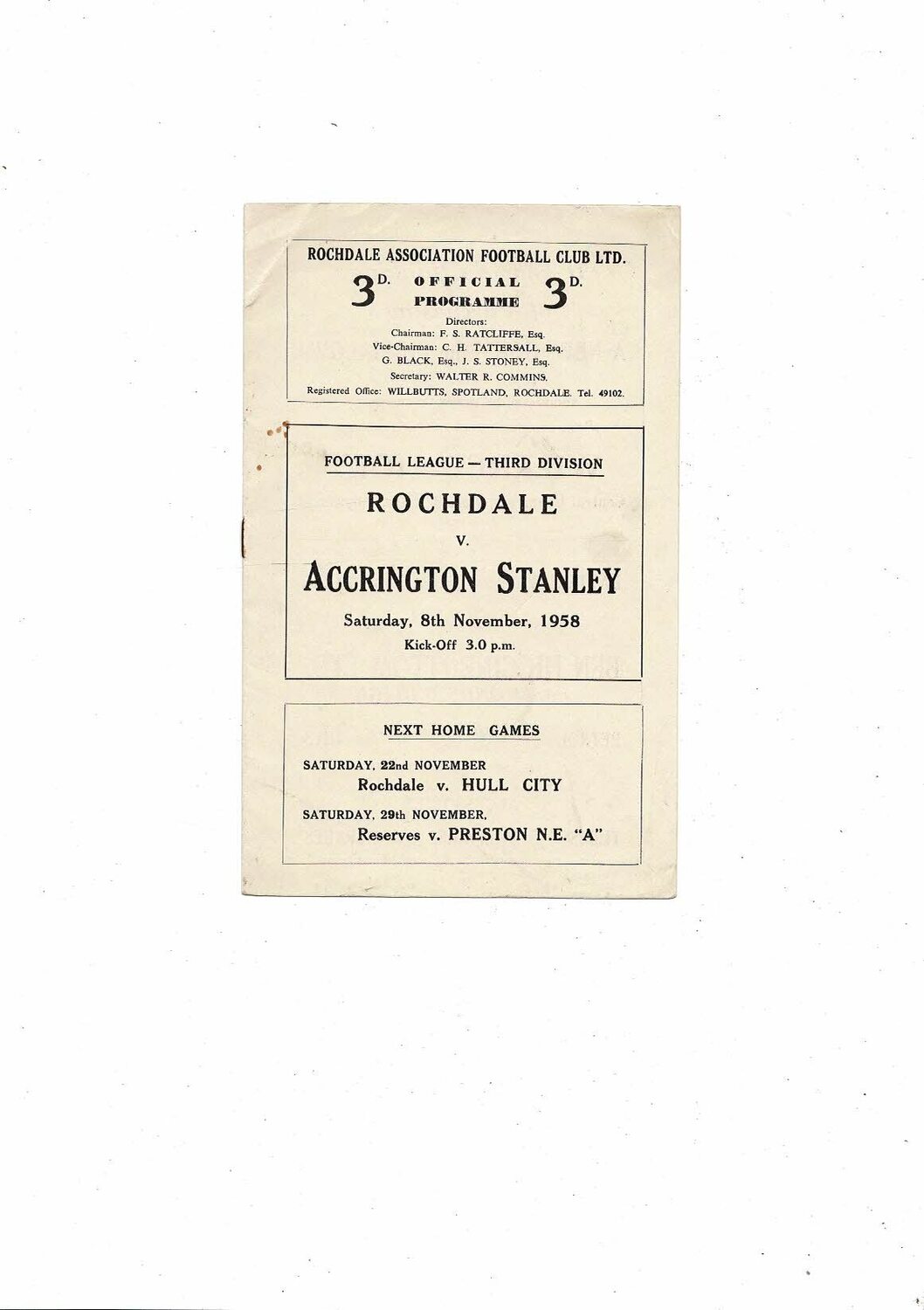 1958/59 Rochdale v Accrington Stanley Football Programme