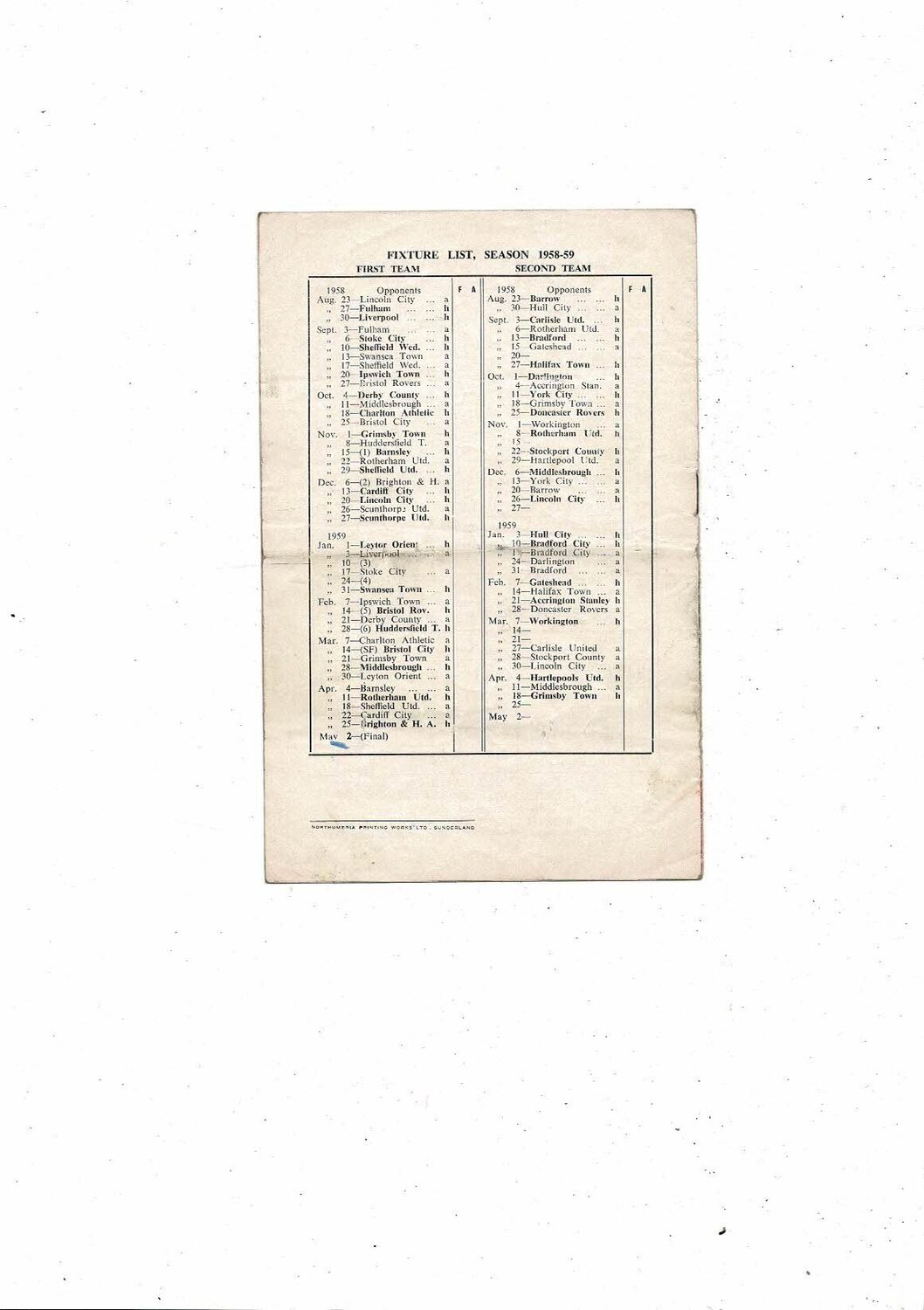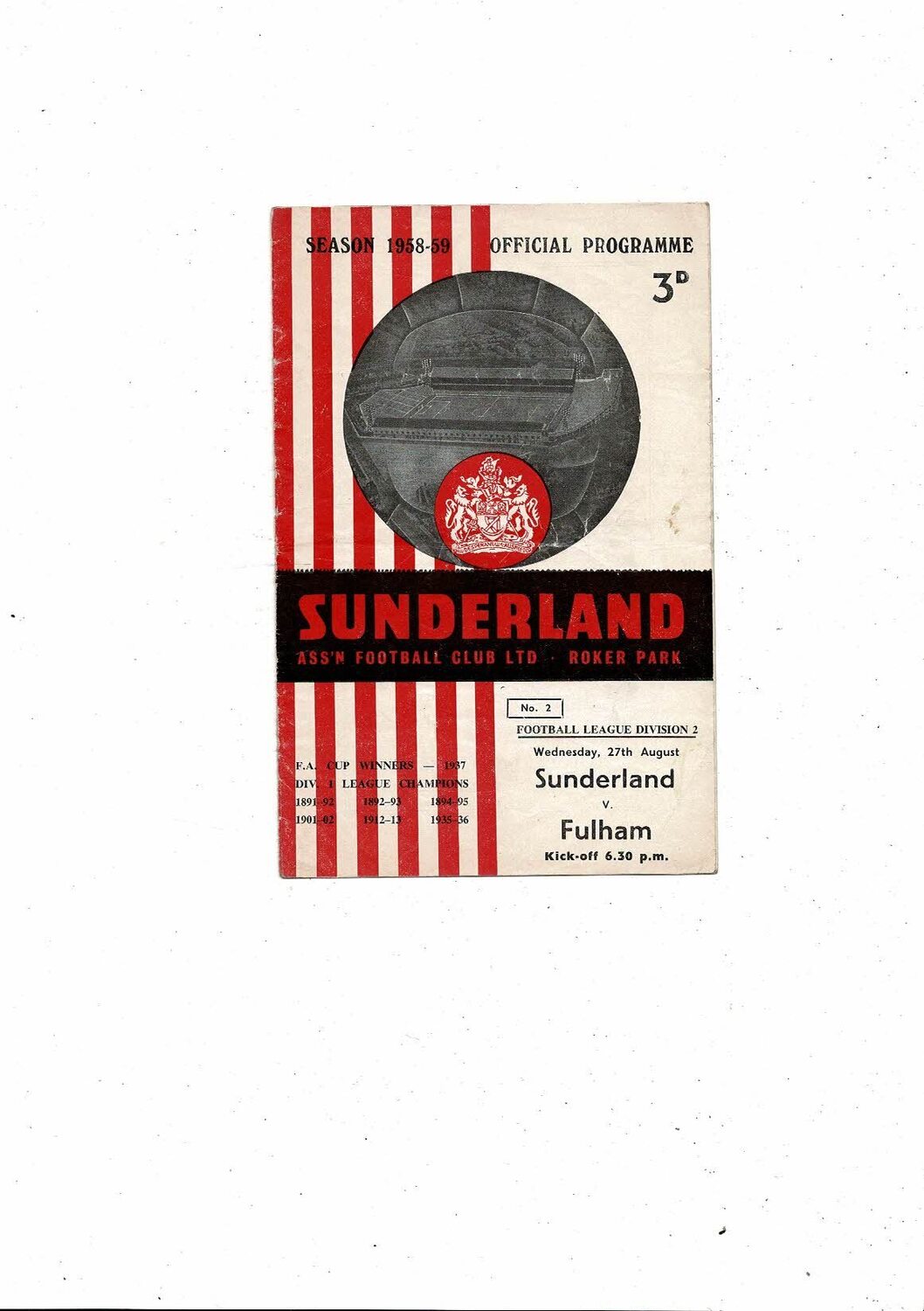 1958/59 Sunderland v Fulham Football Programme