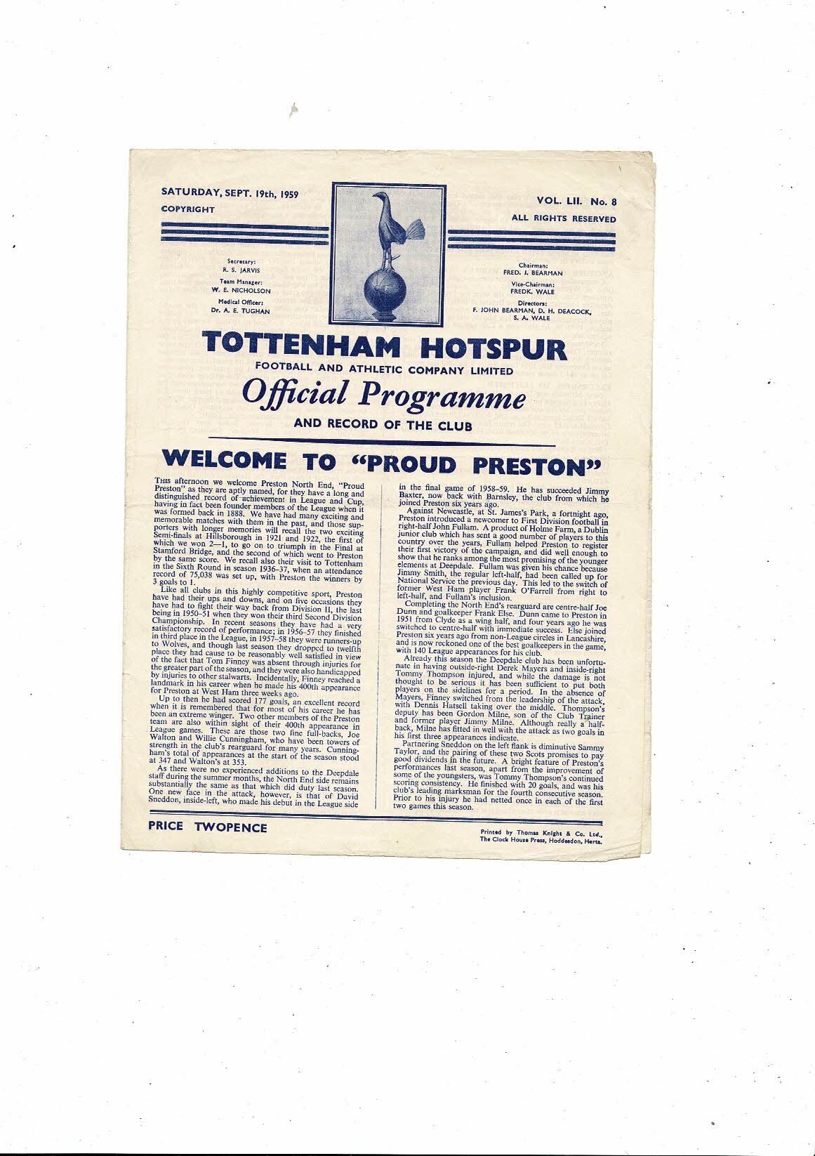 1958/59 Tottenham Hotspur v Blackpool Football Programme