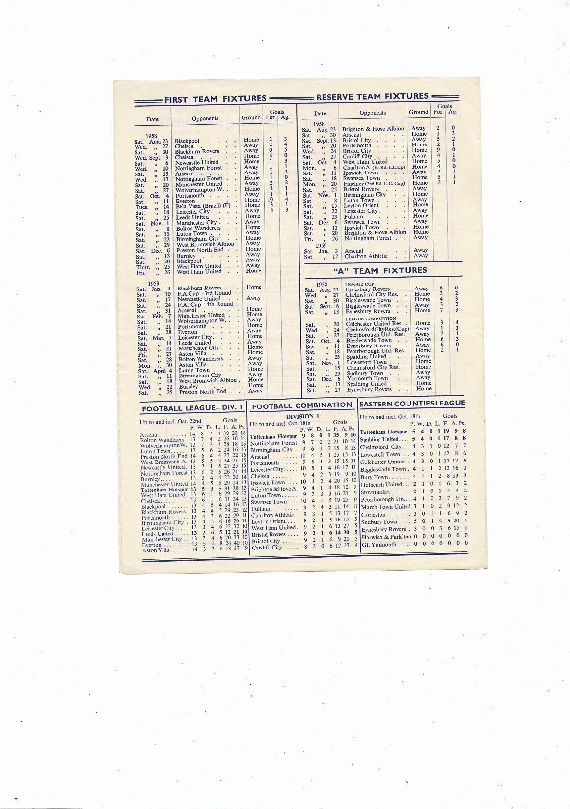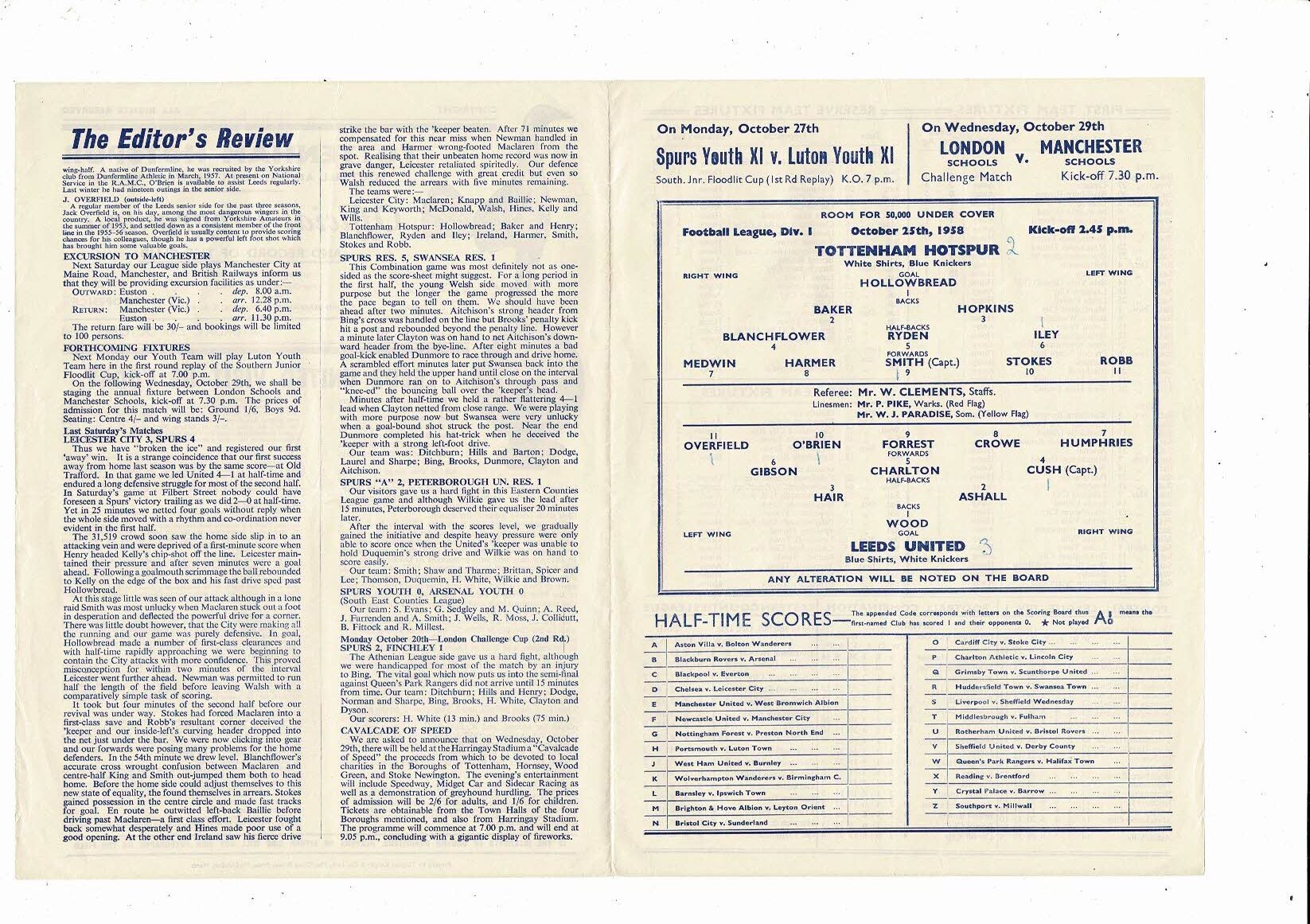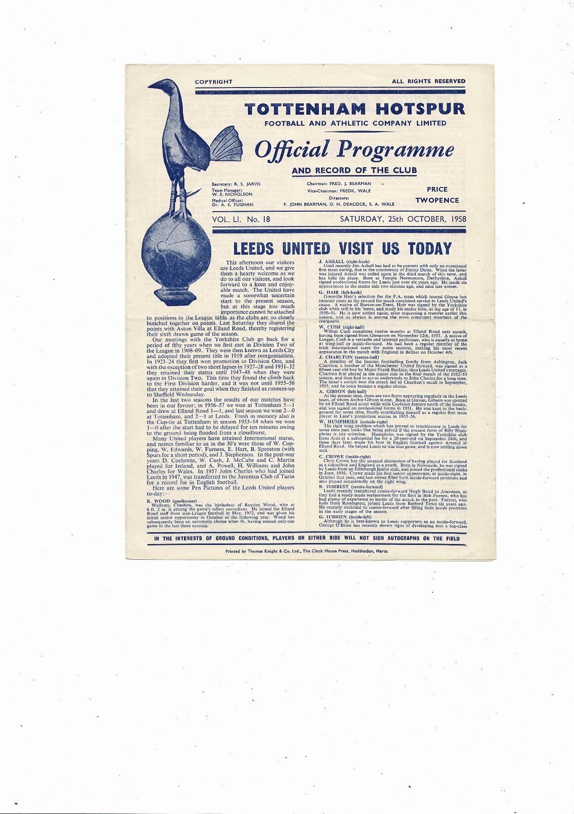 1958/59 Tottenham Hotspur v Leeds United Football Programme