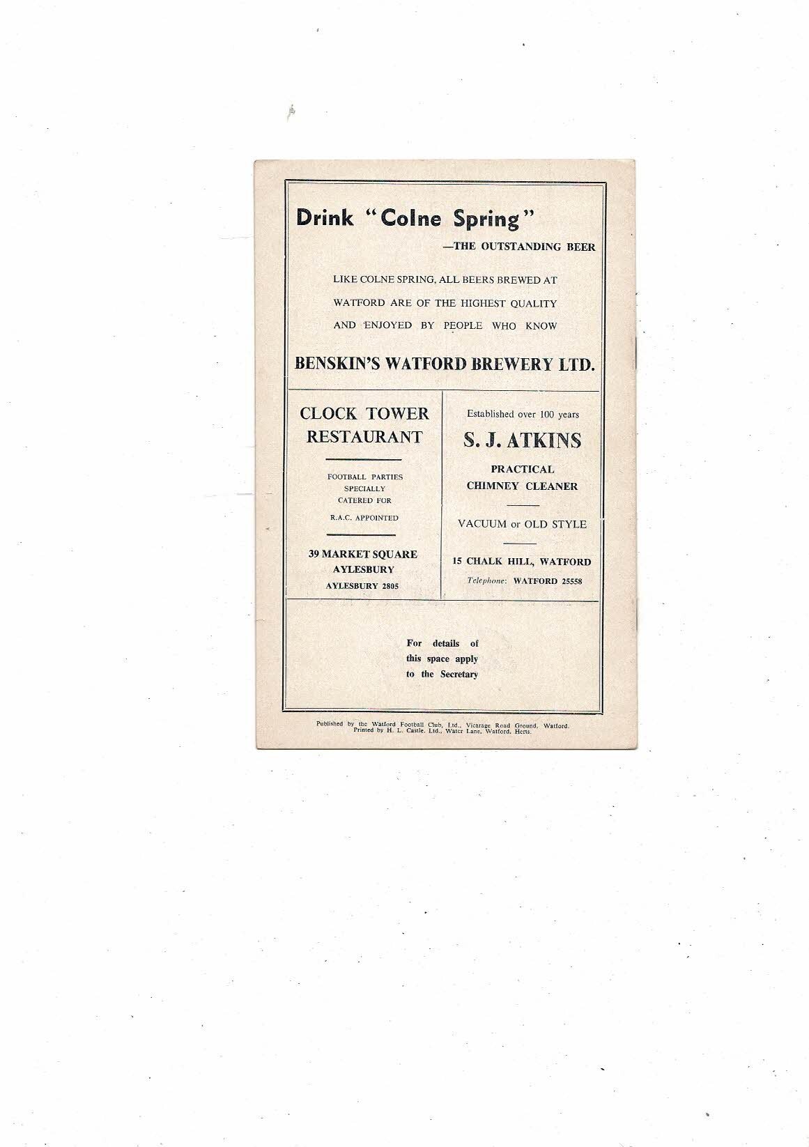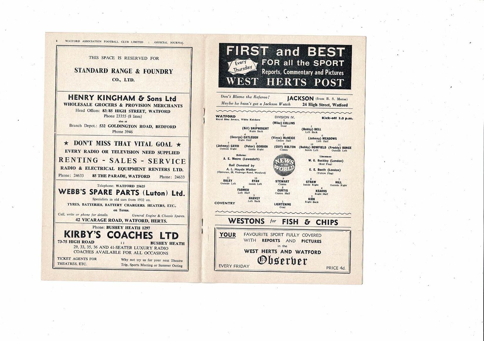 1958/59 Watford v Coventry City Football Programme