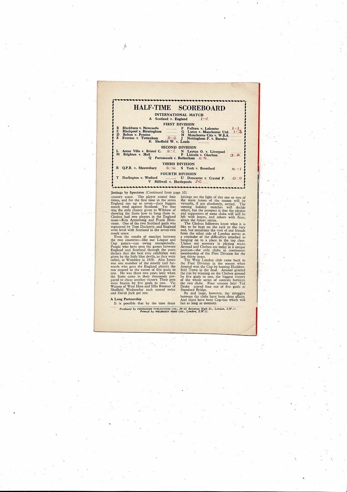 This Original Football Programme is creased also has a light fold with some very minor staining, score, scorers, team changes & some results noted. Please see scans.